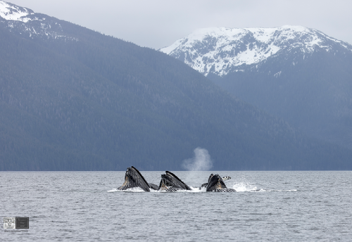 The chill of the winter air is warming and new life is beginning to emerge. As the springtime storms bring a promise of abundance and life, birds are building their nests and flowers are beginning to bloom. Another key marker of the arrival of spring is the arrival of humpback whales in Southeast Alaska. I just returned from an absolutely awesome week in Sitka, Alaska where I had the privilege of witnessing dozens of humpback whales bubble-net feeding on large schools of herring. Pictured above is one if the many feeding displays I was lucky enough to capture! The humpback whales have just returned from their migration to warmer waters in the winter months. During their winter migration they do not eat. All of their energy is spent on breeding, birthing calves, and raising their young. Needless to say, when they return to their Spring/Summer feeding grounds, they are VERY hungry! Humpback whales are baleen whales and they time there arrival in Southeast Alaska with the herring spawn. The waters are filled with millions of spawning herring and the humpback whales take full advantage. They merge into groups to make the most of the abundant feeding opportunity by practicing bubble-net feeding. Once a school of herring is located, the whales dive below the school and swim in a circle while blowing bubbles. This forms a 'net' around the fish and disorients them causing them to swim in a tight ball. The whales then swim up to the surface, trapping the ball of fish against the surface of the water. Now it is time to feast! The whales swim to the surface in tandem and open their huge mouths to capture as many herring as they can! When they close their mouths their baleen allows them to filter out the salt water and swallow the many, many fish they just caught. Using these feeding methods which have been mastered and passed down by previous generations, the whales are able to feast on up to 2,000 pounds of fish per day!