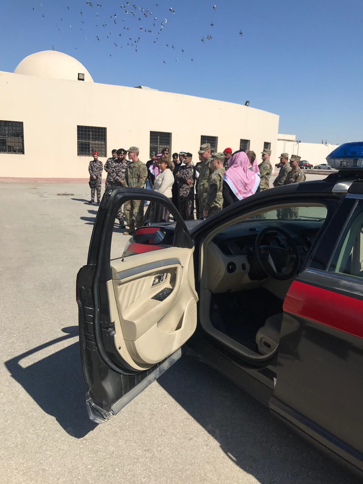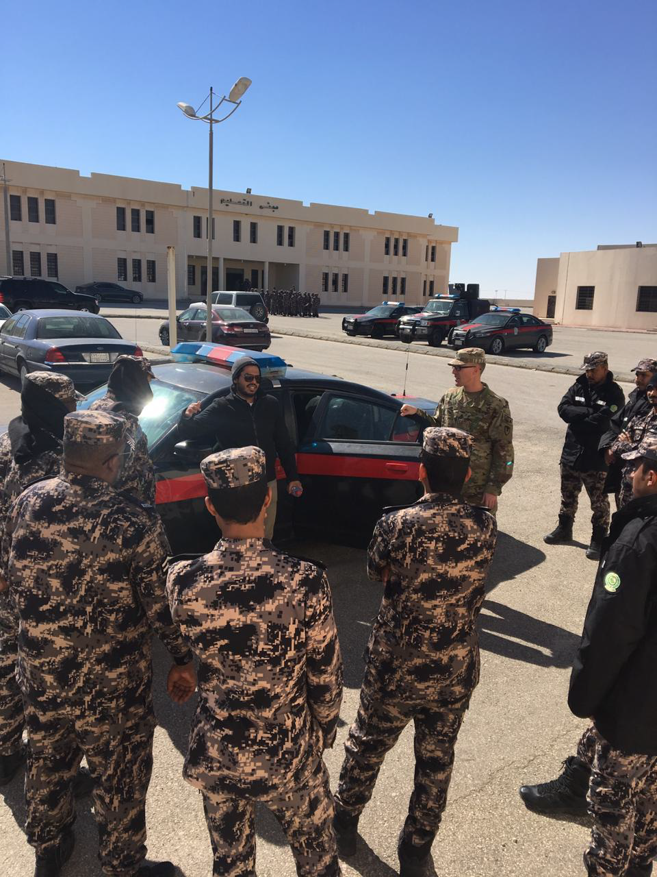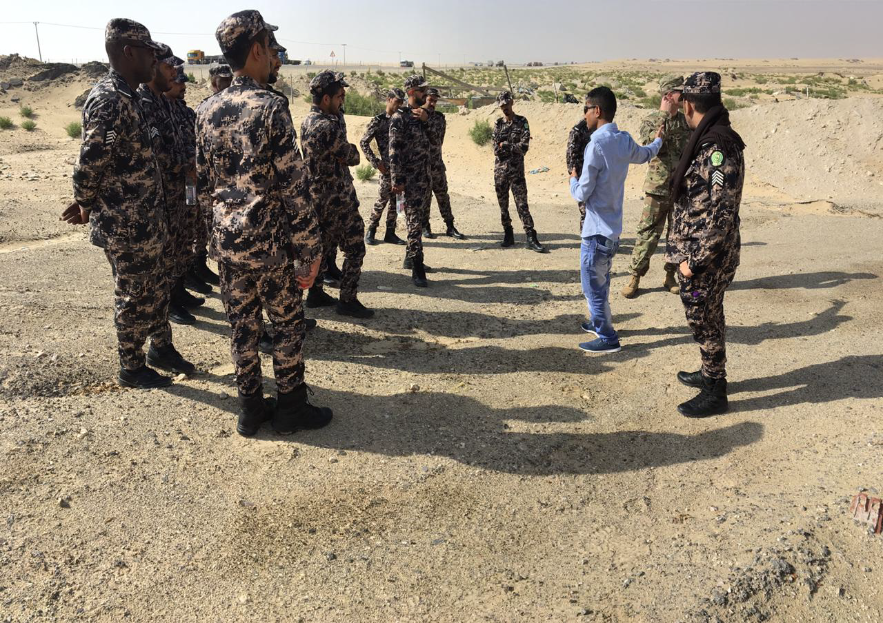 Sgt 1st Class Justin Valenti communicates with Saudi Arabian police through the use of an interpreter.