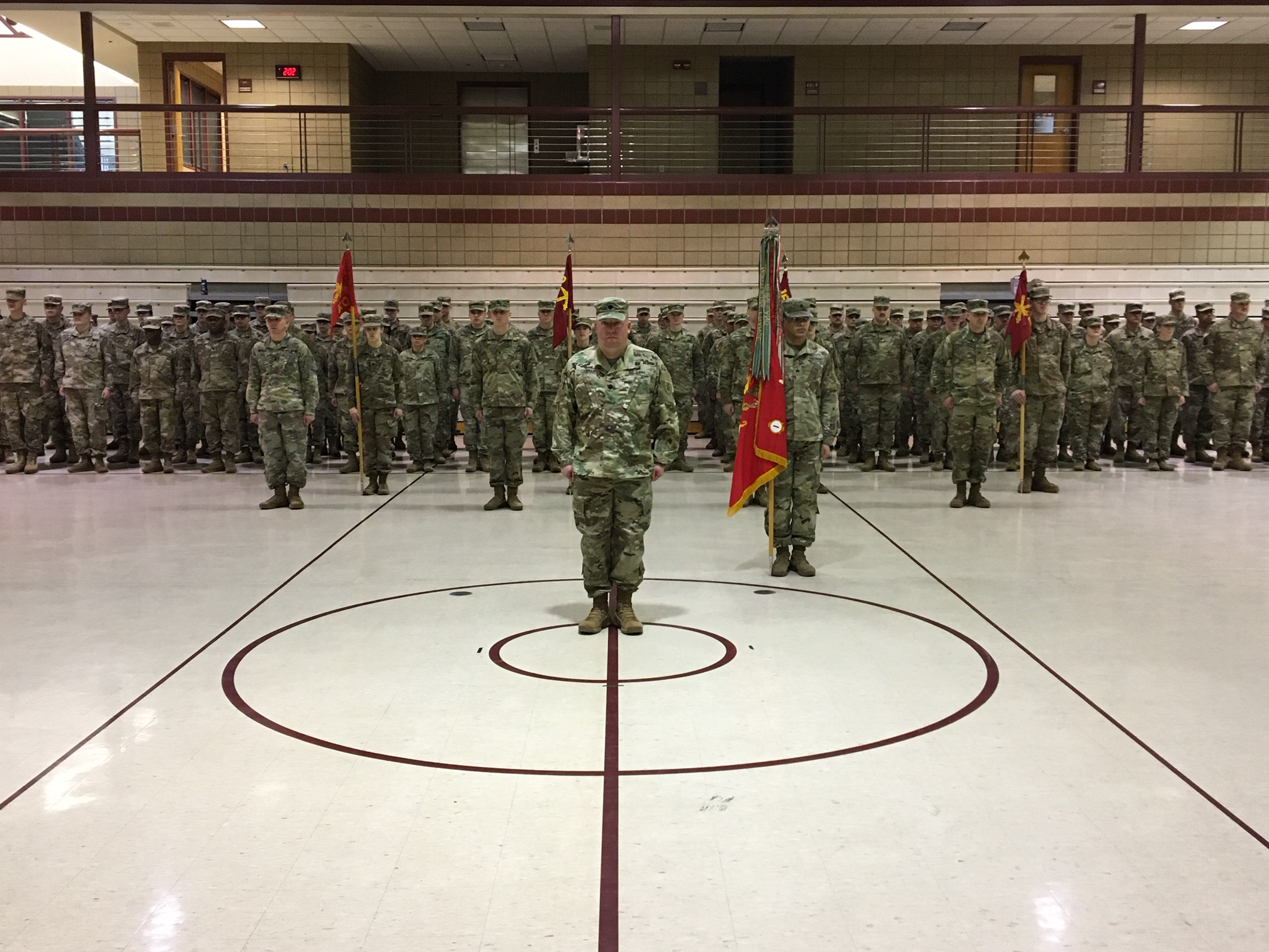 The Soldiers of the 1st Battalion, 188th Air Defense Artillery Regiment, stand by for the battalion's change of command ceremony in Grand Forks on Jan. 25.