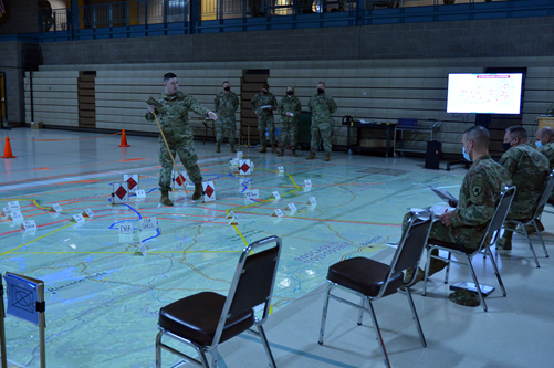 Forty-eight Soldiers of the 141st Maneuver Enhancement Brigade (MEB) conducted a ROC, or Rehearsal of Concept, at the Fargo Armed Forces Reserve Center on Dec 6, 2020. The ROC provided an overview of III Corps Concept of Maneuver and the MEB’s role during their Warfighter Exercise at Fort Hood, TX from Jan 26 through Feb 11, 2021. Warfighters prepare commanders and their staffs to plan, prepare, fight, and win during large-scale combat operations where U.S. forces start at a position of disadvantage against a near peer threat.