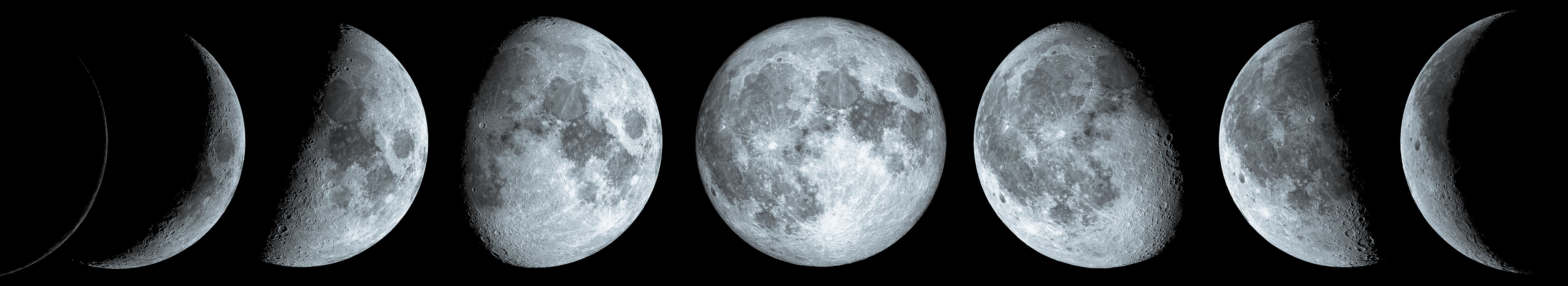 Created with images by lukszczepanski - "Blue super moon glowing with blue halo isolated on black background" • elen31 - "Phases of the Moon: waxing crescent, first quarter, waxing gibbous, full moon, waning gibbous, third guarter, waning crescent, and new moon. The elements of this image furnished by NASA." • Martin Gruber - "pink moon over Stuttgart - close up "