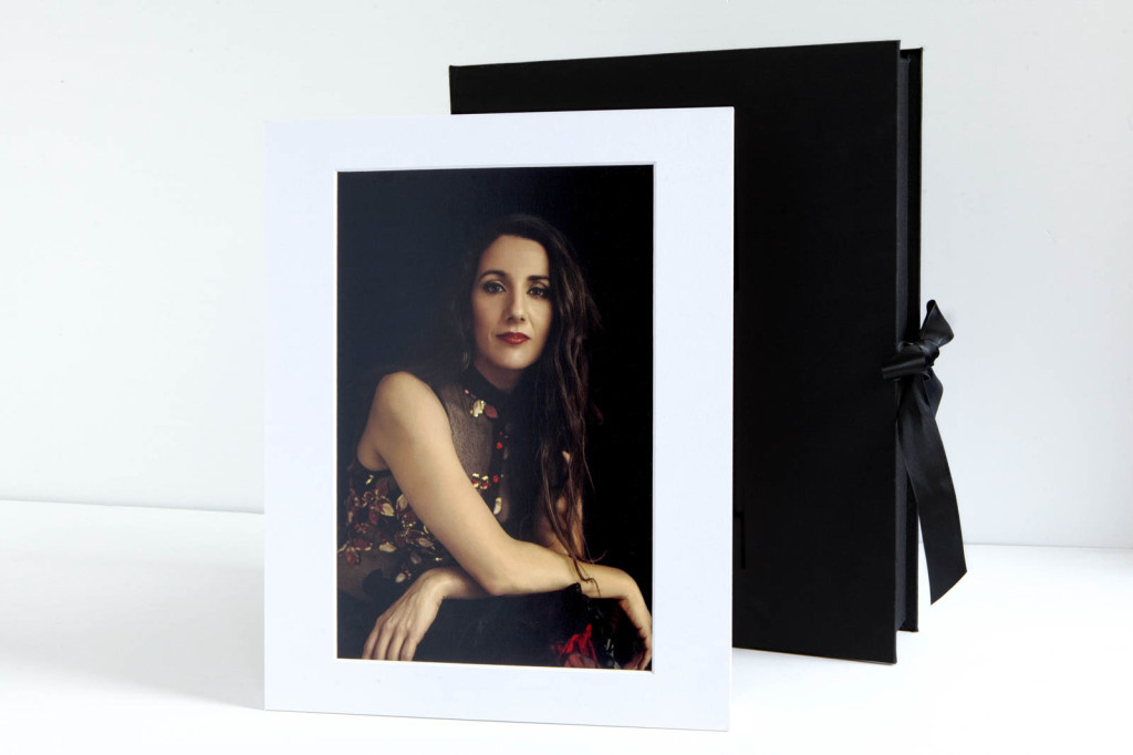 Each Luxury folio box contains 8”×12” large matted prints in 11”×14” acid free, beveled mats. The folio box is made with a couture black silk or linen. Each box has a satin ribbon lining to easily lift your prints out of the box.