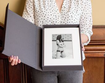 Our luxury fabric covered, handmade folio boxes are the best way to display and store your precious art. These boxes will contain your favorite photos to be stored on your bookshelf, or you can display each image on your wall in a frame, gift this prints to others, or tuck them away for safe-keeping. The amount of images you put into it is entirely up to you. The bigger the box, the less you pay per image. The best part is, you can always come back and add more photos to the box if you want more! Sizes range from 10 to 29 matted prints.