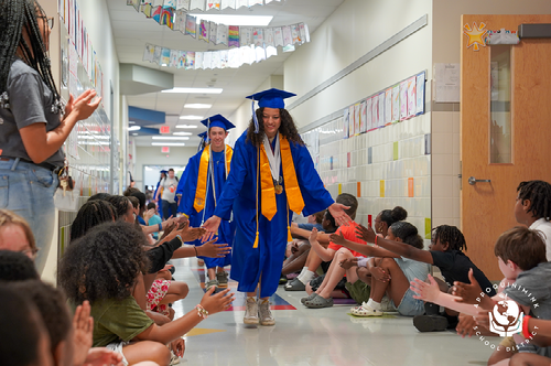 To celebrate their upcoming graduation, seniors participated in the school tradition of parading through the schools that helped shape them in Middletown High School's annual Grad Parade! Students were greeted with cheers, high-fives, and posters with warm wishes as they walked through the middle and elementary schools they attended earlier in their education journey.