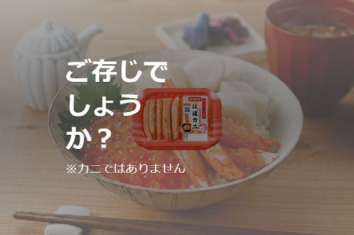 まるで本物のホタテのような食感と風味を再現した一口サイズのホタテ風味かまぼこです。そのままはもちろん、サラダやバター焼きに。※「ほぼホタテ®」はカネテツデリカフーズ株式会社の登録商標です(第5779630号)。