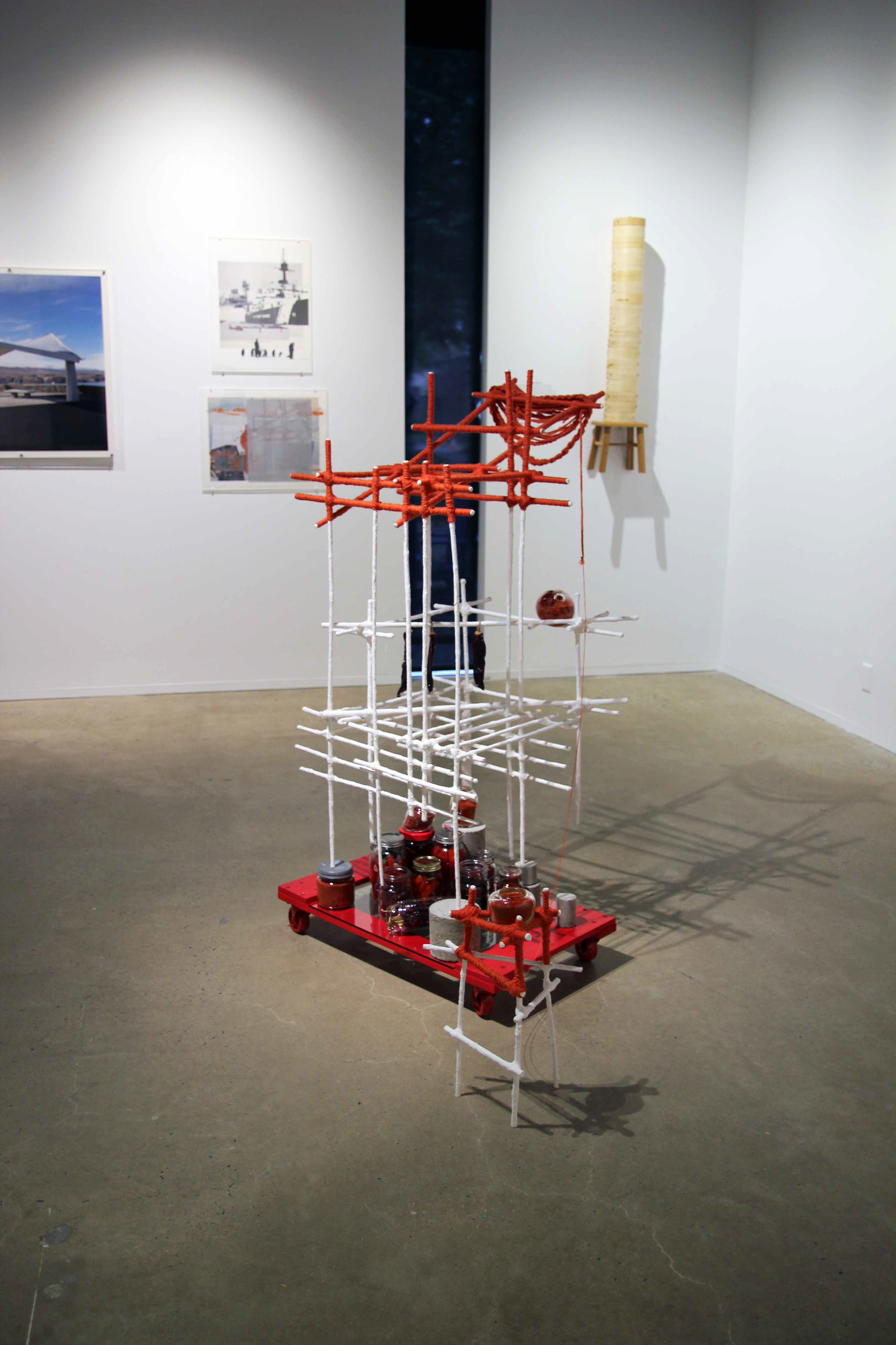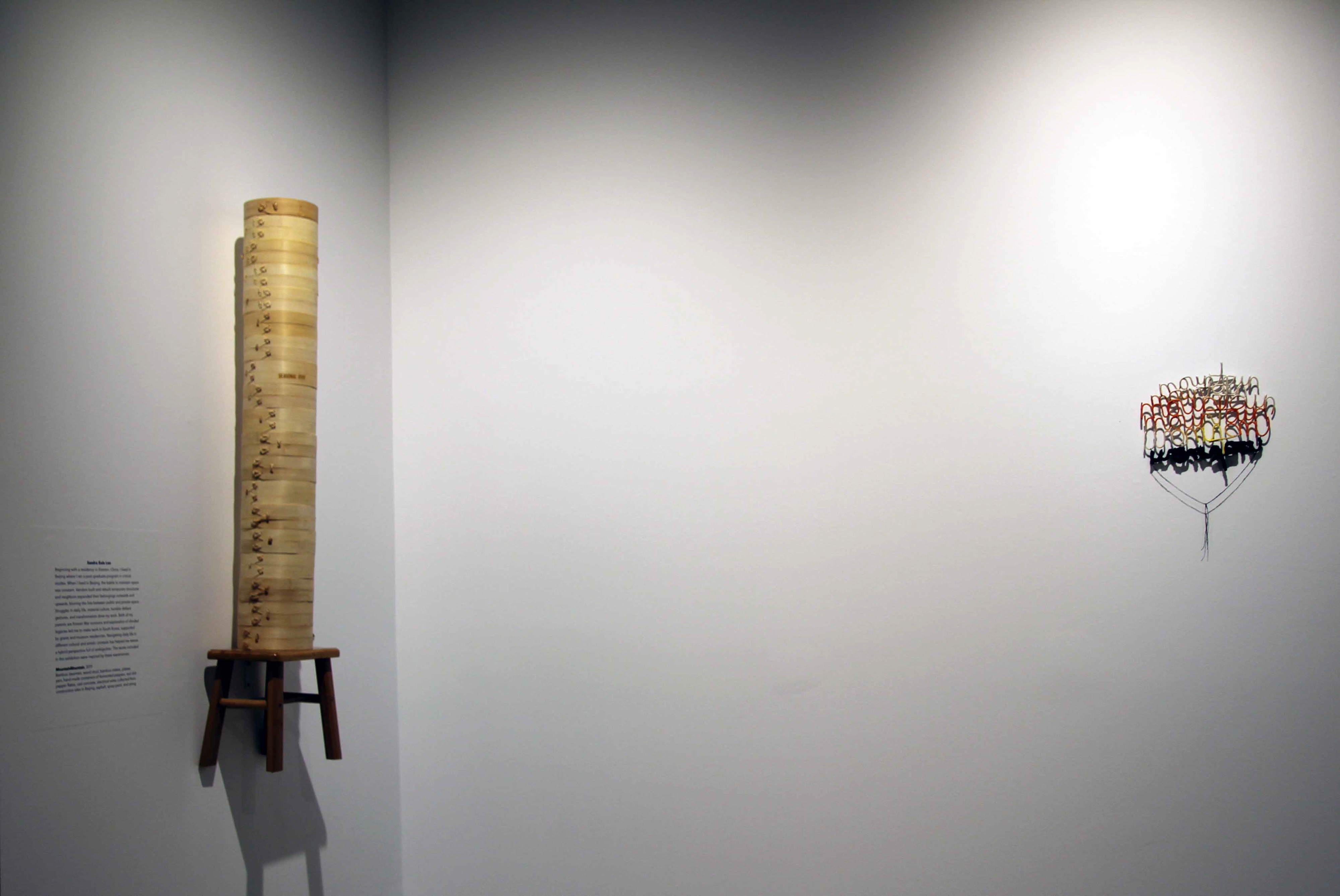 Beginning with a residency in Xiamen, China, I lived in Beijing where I ran a post-graduate program in critical studies. When I lived in Beijing, the battle to keep space was constant. Vendors built and rebuilt temporary structures and neighbors expanded their belongings outwards and upwards, blurring the line between public and private space. The works included in this exhibition were inspired by these experiences and made this year.