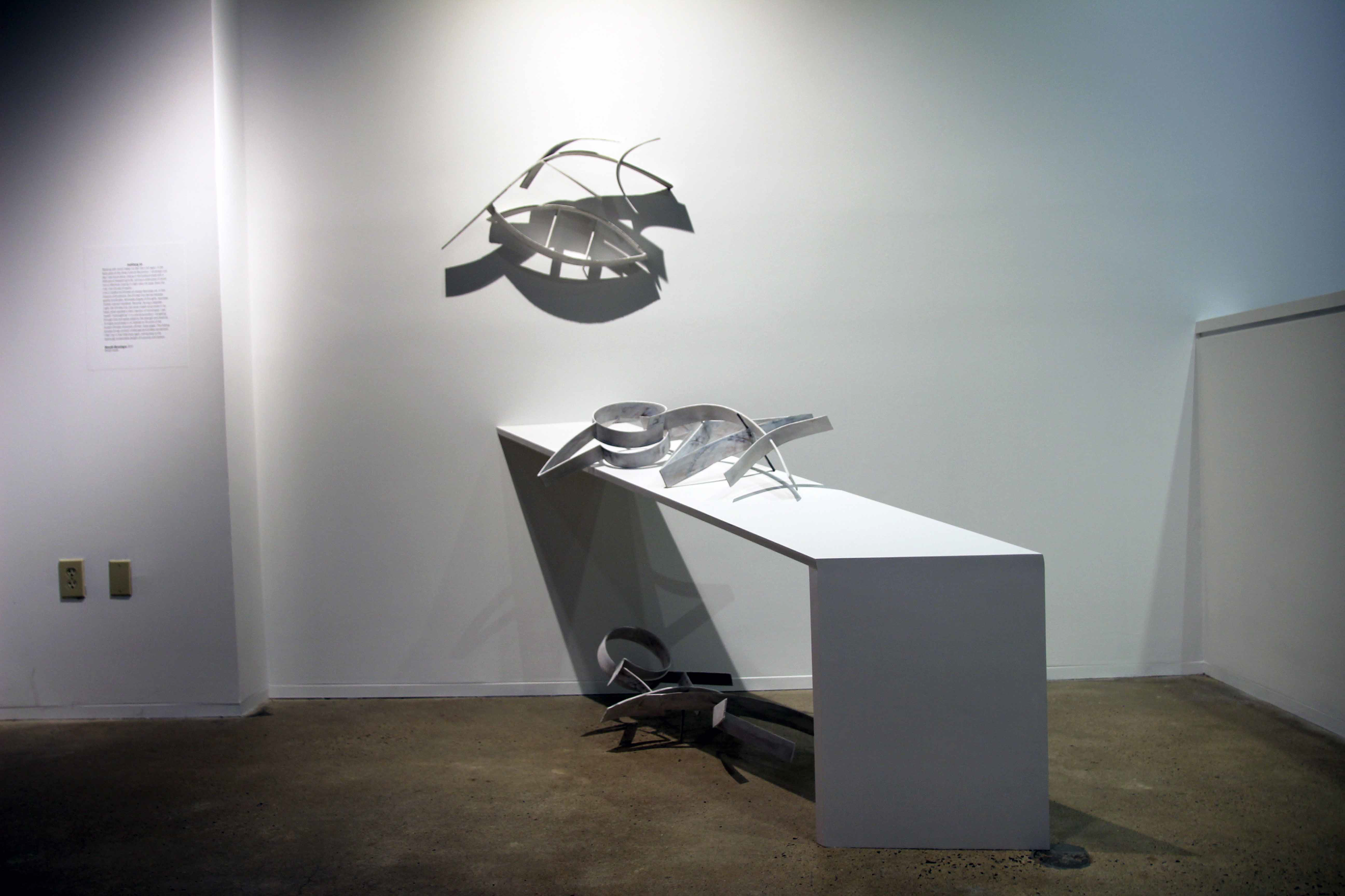 When and why did you start creating this work? I created this project as a direct response to a space. The gallery had floor to ceiling windows and the sun cast dramatic shadows into the room. This lead me to create an artwork that could mimic shadows while simultaneously interact with the real shadows present in the gallery.
