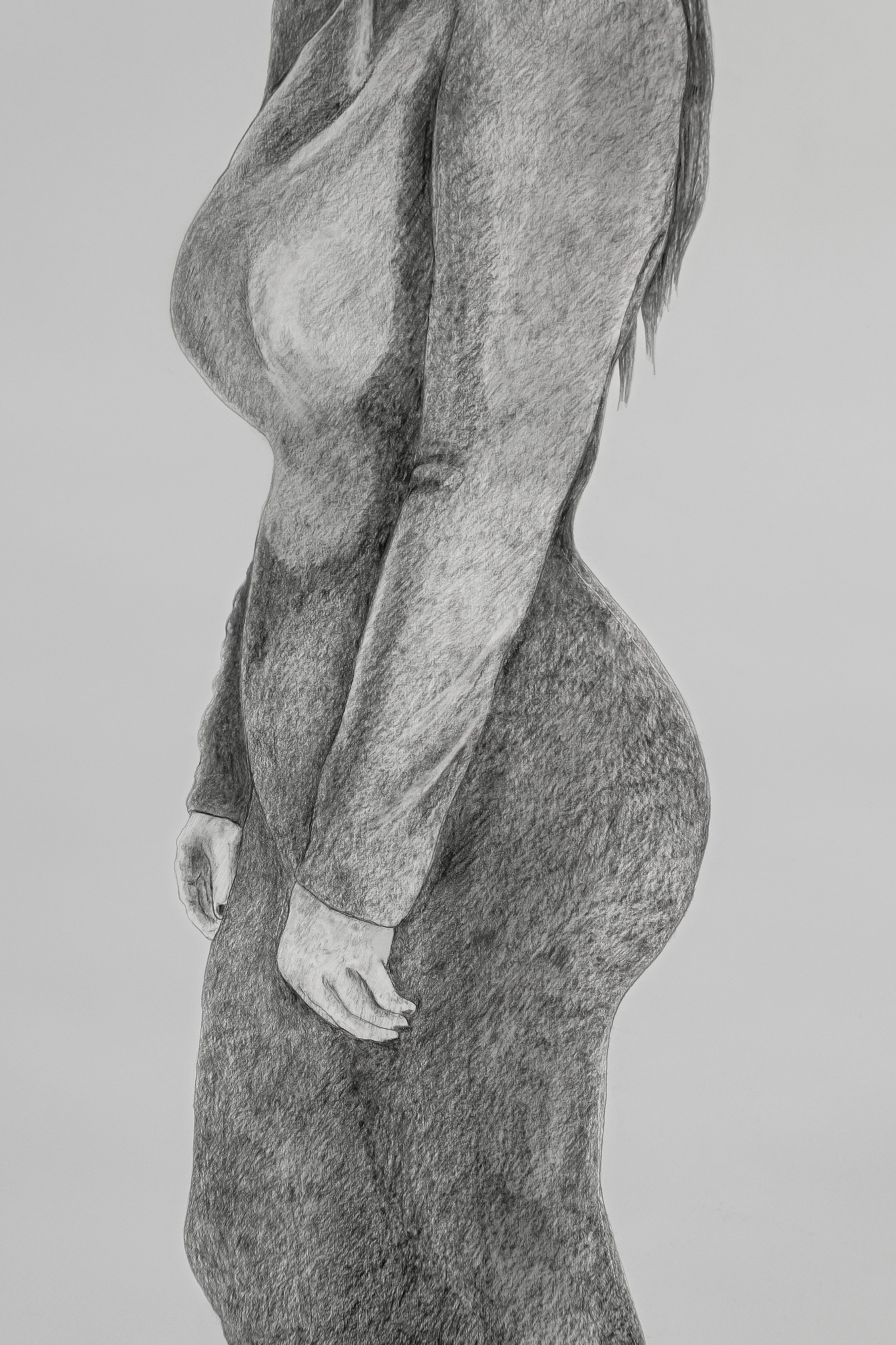 What process and materials did you use? I drew the images by hand, using graphite and charcoal on Strathmore cotton paper. For source material, I referenced photographic images found on the Internet.