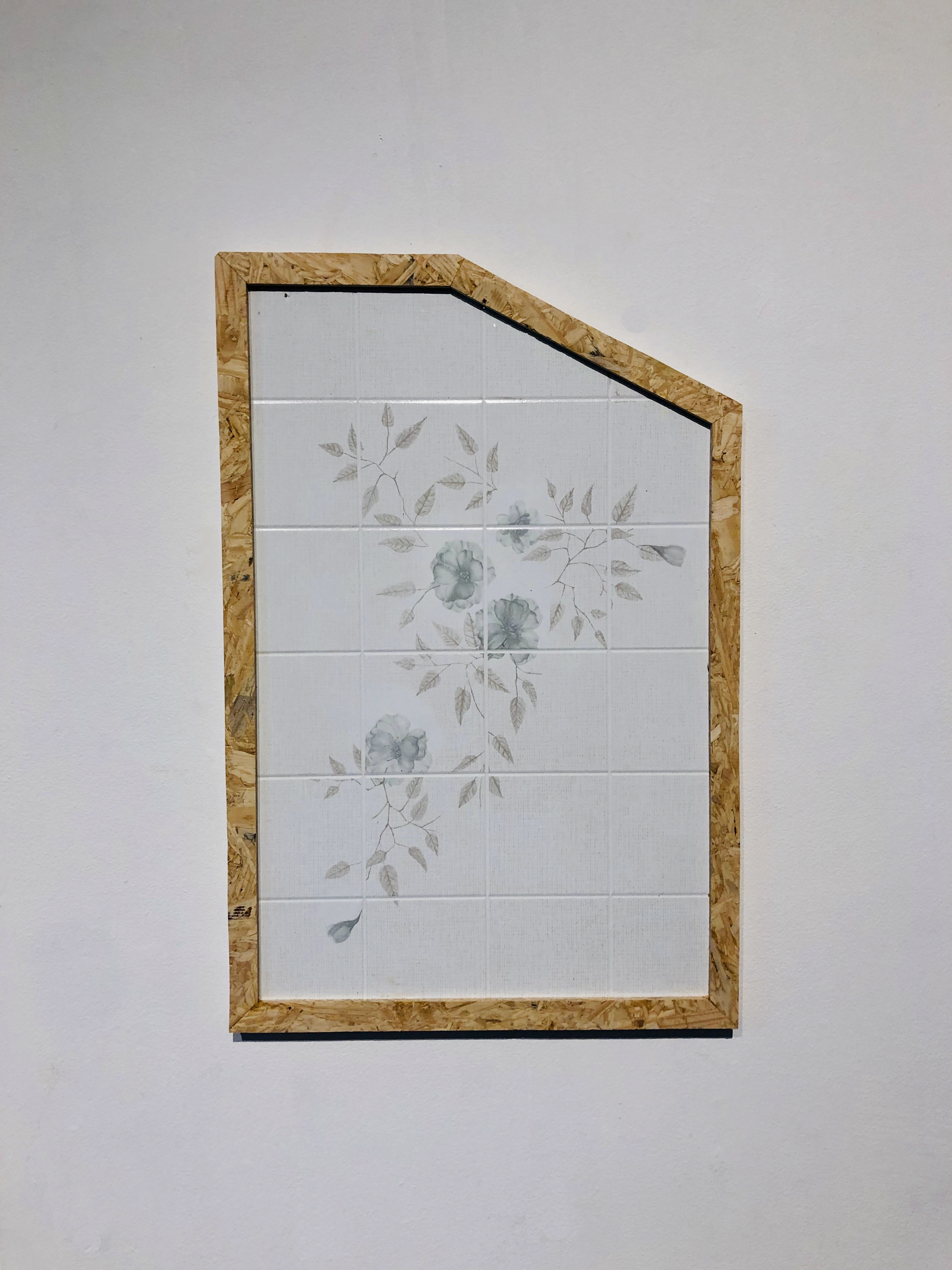 What process and materials did you use? These works are primarily Melamine coated decorative hardboard and house paint. This series primarily utilized repurposed and discarded materials from now defunct home restoration businesses and construction supply companies. Recreating intersections isolated from bathrooms, odd wall coverings, and broken fixtures, I’ve continued to use these materials in an attempt to both reference and resist the allure of home and space-making.