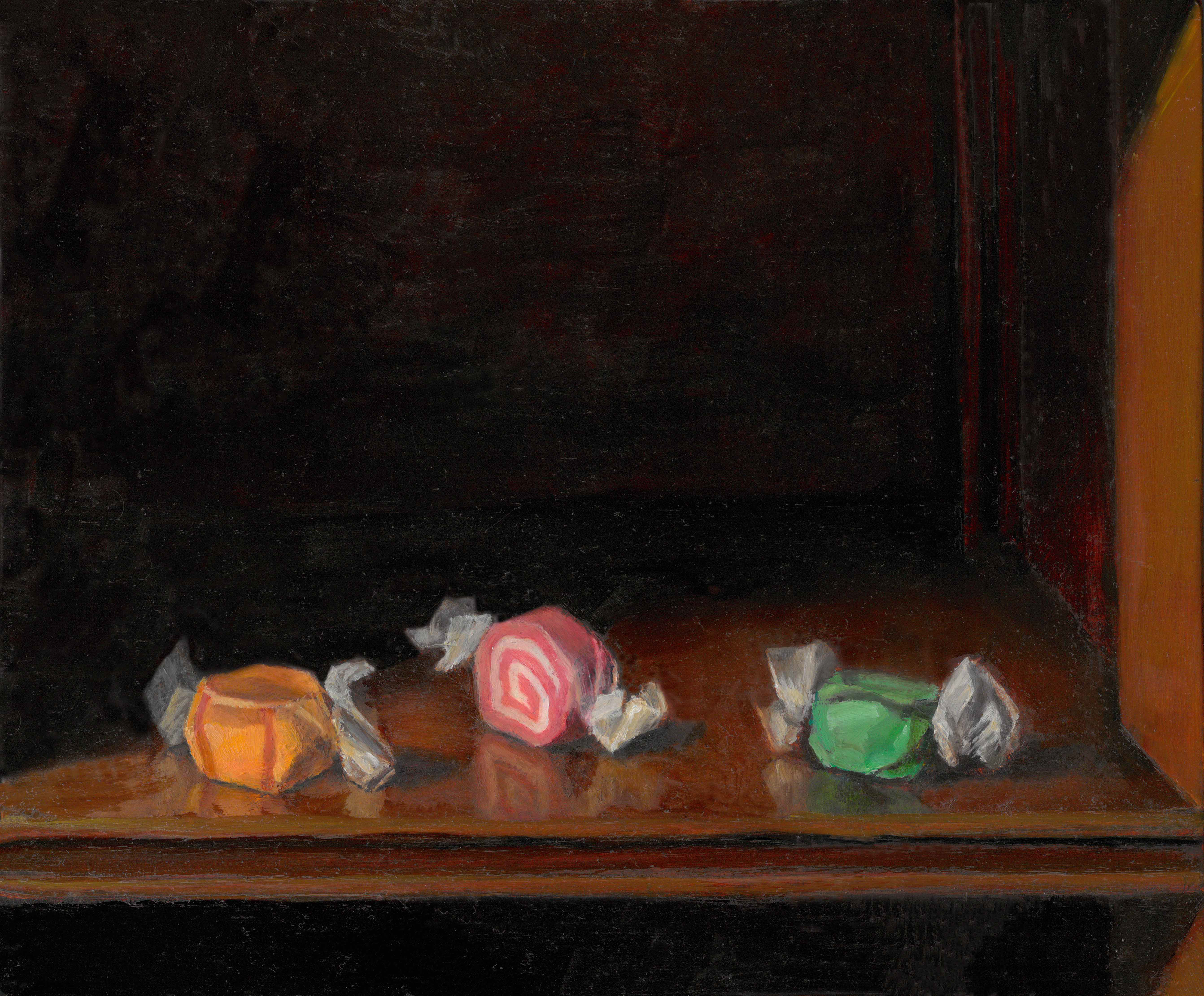 What process and materials did you use? These paintings are oil on panel. I like the firm and durable surface of wood supports instead of canvas, and since my paintings are small, panels are not too heavy or bulky. I build up the paint from dark to light and from transparent to opaque, often leaving some of the early layers of warm, transparent brown visible in the finished painting.