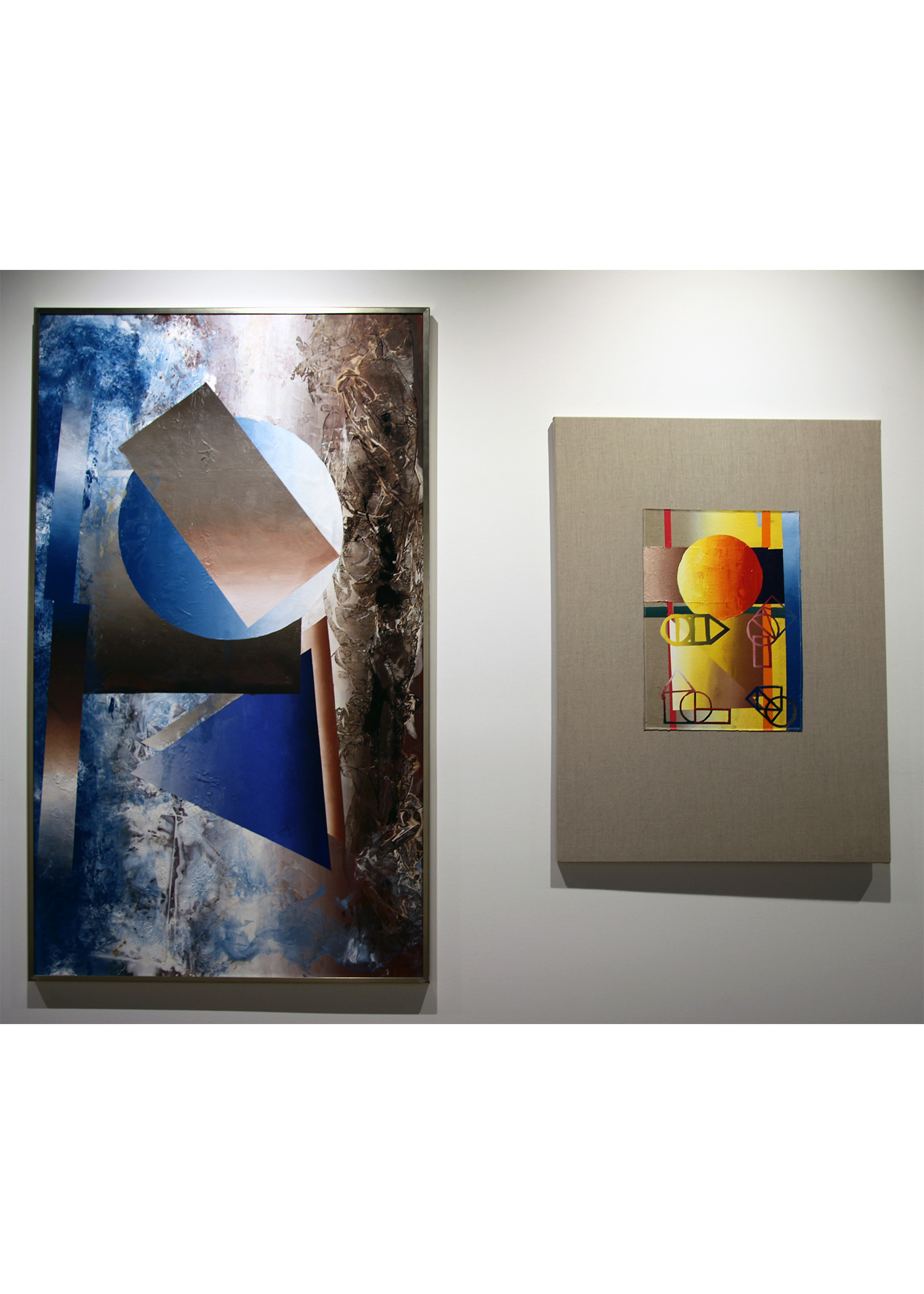 What process and materials did you use? I used acrylic on linen, with shapes on one piece, and acrylic on paper for the larger artwork.