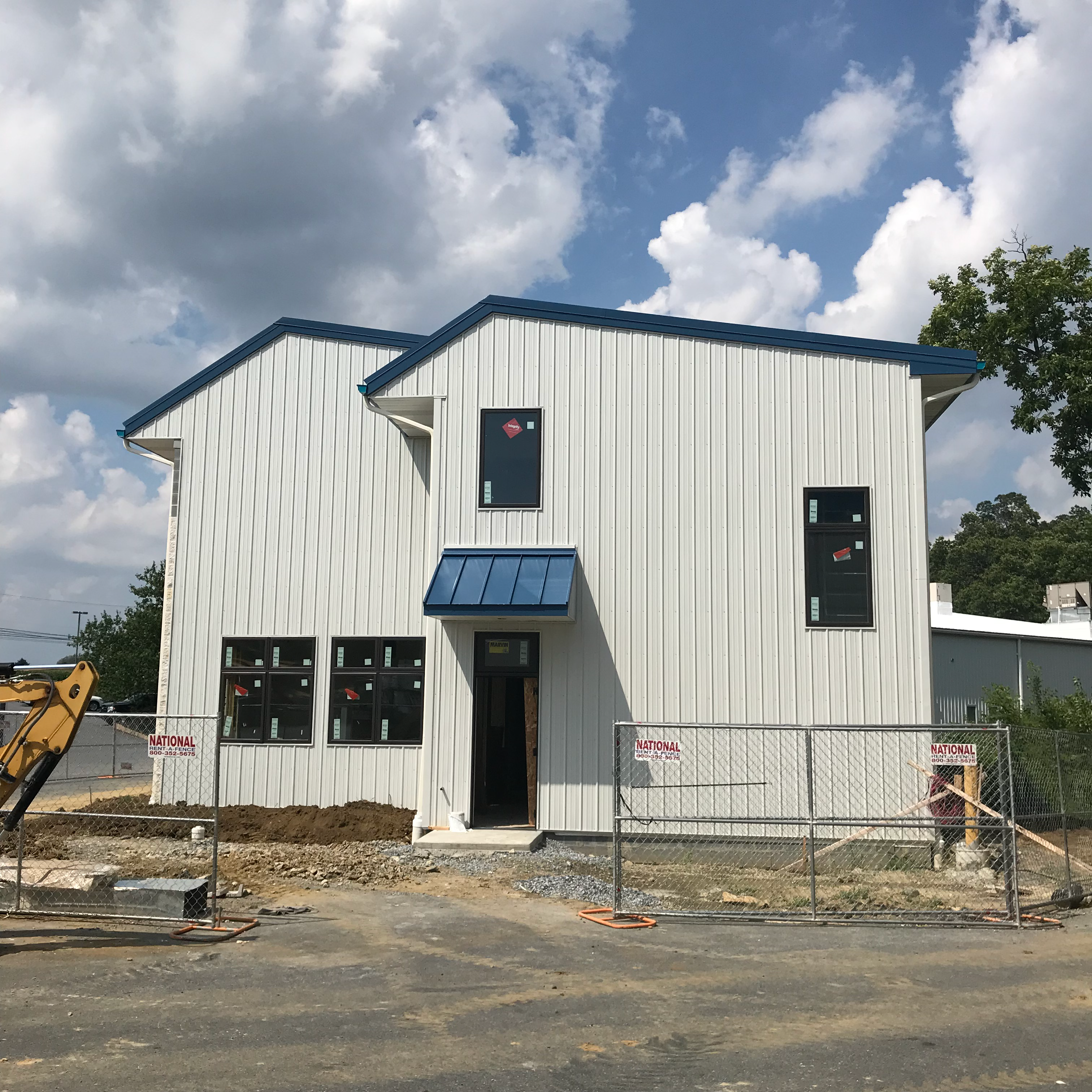 Office Addition for GR Mitchell Building Supplies, Willow Street, PA, 2019–Ongoing. Architect/designer: Carol Hickey, Hickey Architects; Project assistant: Carol Donten, Hickey Architects; Site design: Derck and Edson Associates; Structural design: Greenebaum Structures; Soil Testing: American Testing Laboratory; Survey: Weber Surveyors; MEP engineering design: Sharpe Engineering; General Contractor: Descco Design and Construction; Framing and specialty trim and cabinetry: Owner/GR Mitchell; Elevator: Lancaster Elevators; Metalwork and structural steel: Peifer Welding; Sprinkler system: Protech; Masonry: Steve Groff; Painting: Hursh Painting Co.; Concrete-specialty floor treatment: Durable Surfaces; Electrical: Hertzler Electric; Fire alarm: Llomar Alarm Co.; Mechanical: JK Mechanical; Plumbing: J.G.Graybill Plumbing; Flooring and tile: Martin’s Flooring; Drywall: Rock and Metal Systems; Insulation: Keener Insulating and Supply; Metal roofing and siding: Fisher Brothers Exteriors; Rubber roofing: Richard L.Sensenig Co. Photography by Taylor Brown, Lancaster, PA.