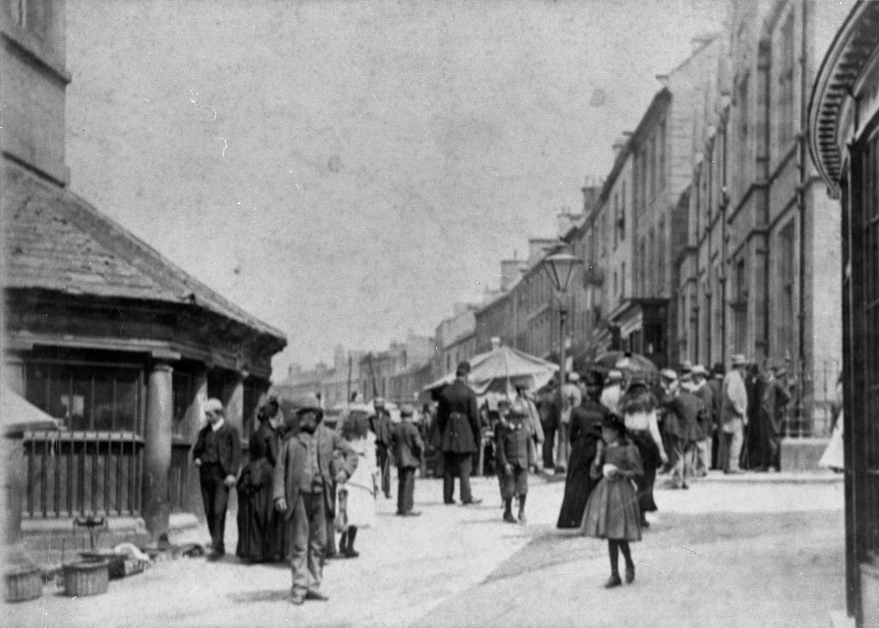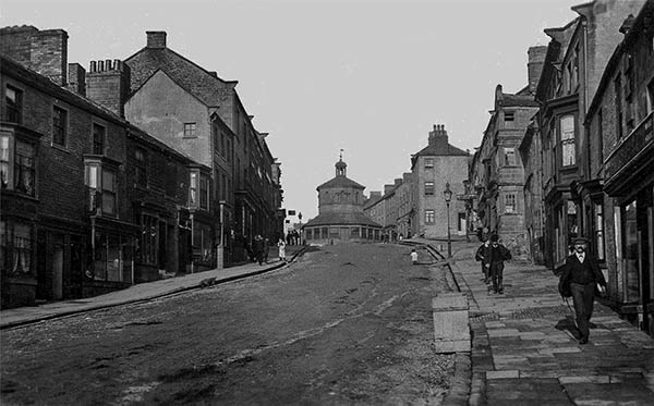 The "street" starts and ends between the distinctive "Buttermarket" and a sharp bend near the prominent spire of the town's Methodist Church.