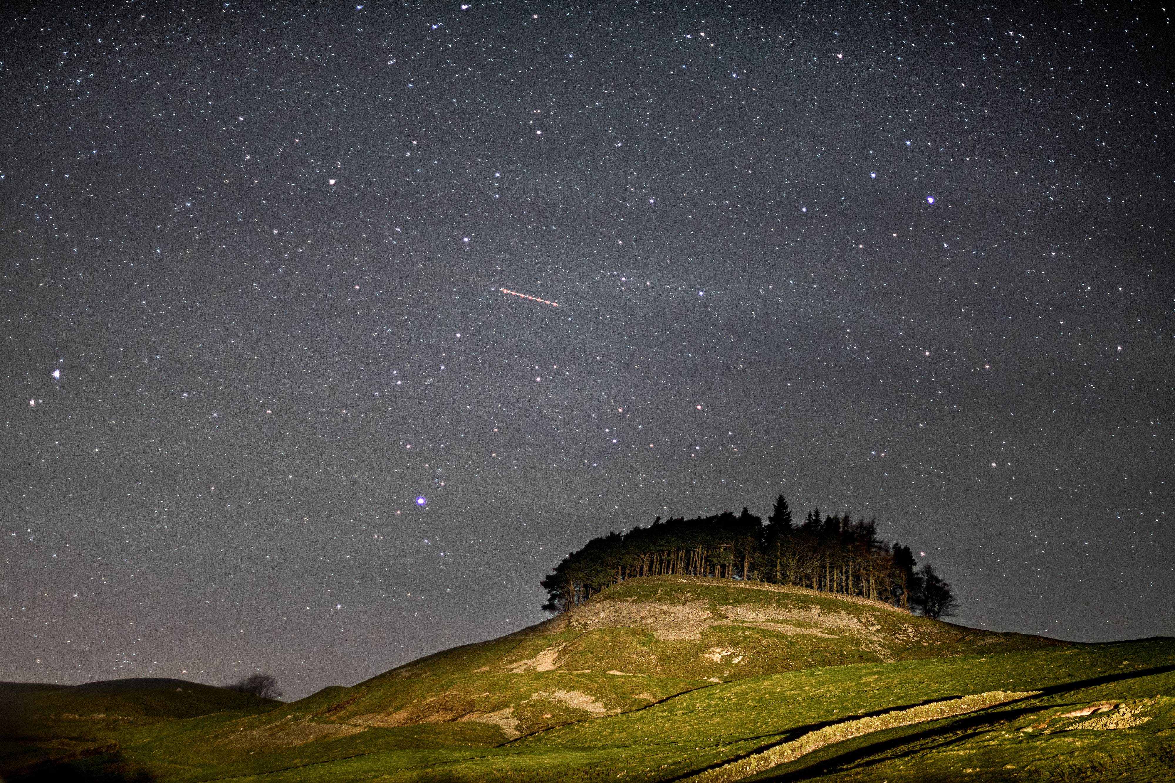 Above the quiet hamlet of Bowbank in Teesdale a copse of trees silhouetted against the sky draws our attention skywards.