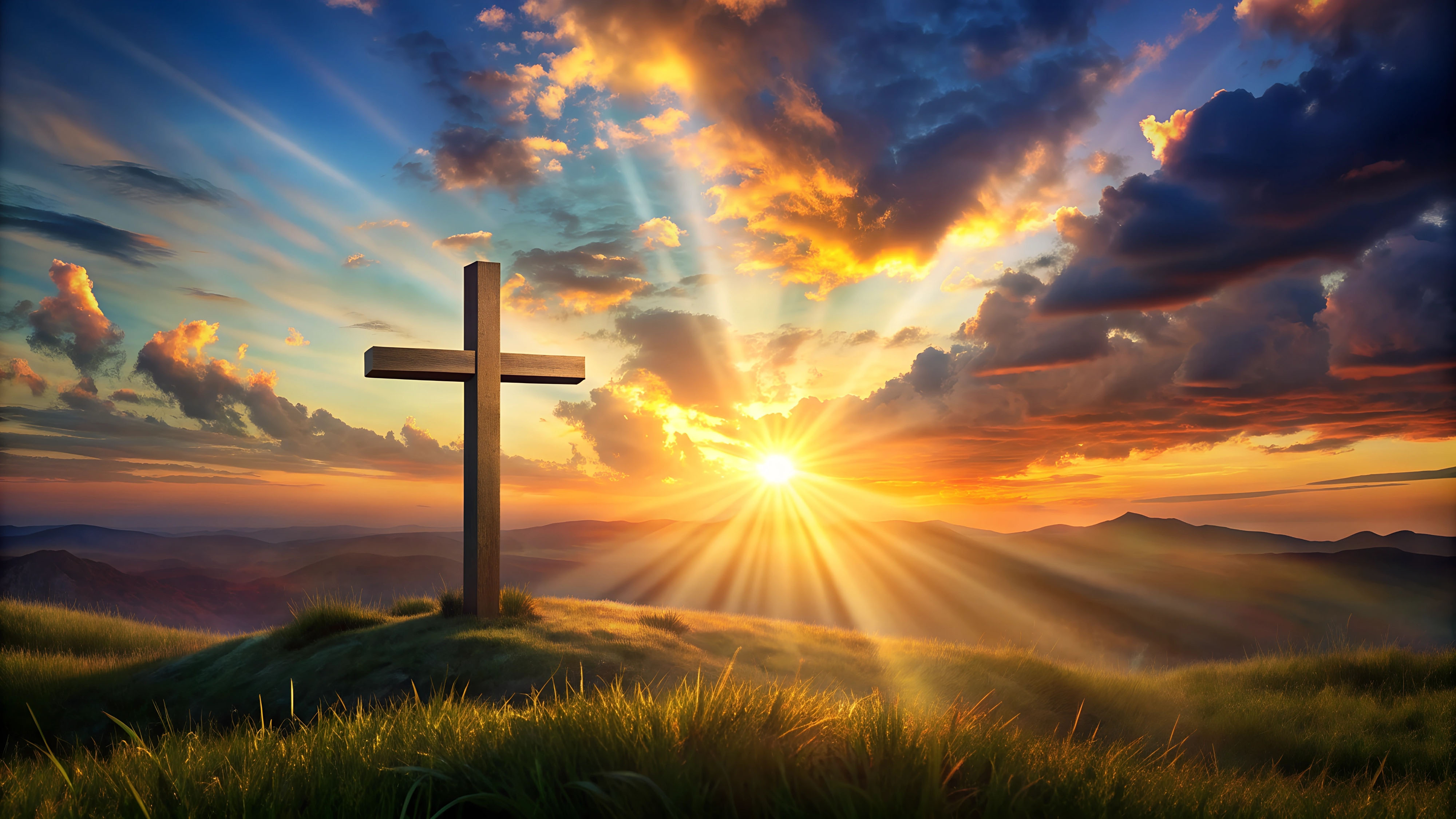 Created with an image by arri - "Scenic landscape with a large wooden cross on a hill at sunset"