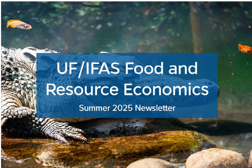 Our graduate students are also being recognized for excellence. The Graduate Student Association AE-GSO was recognized by the UF Office of Student Involvement at the end of the year for their impactful professional development programming throughout the year designed to prepare program graduates for a successful launch onto the job market. In addition, Adams Ceballos-Concha was awarded the Outstanding Dissertation Award from the International Association of Aquaculture Economics and Management (IAAEM). At our Annual Florida Agricultural Policy Conference, we hosted our first-ever Graduate Student poster competition, where Ph.D. students Roberto Koeneke (1st) and Faith Aiya (2nd ) took home prizes for their ability to effectively connect research to real-world policy implications.