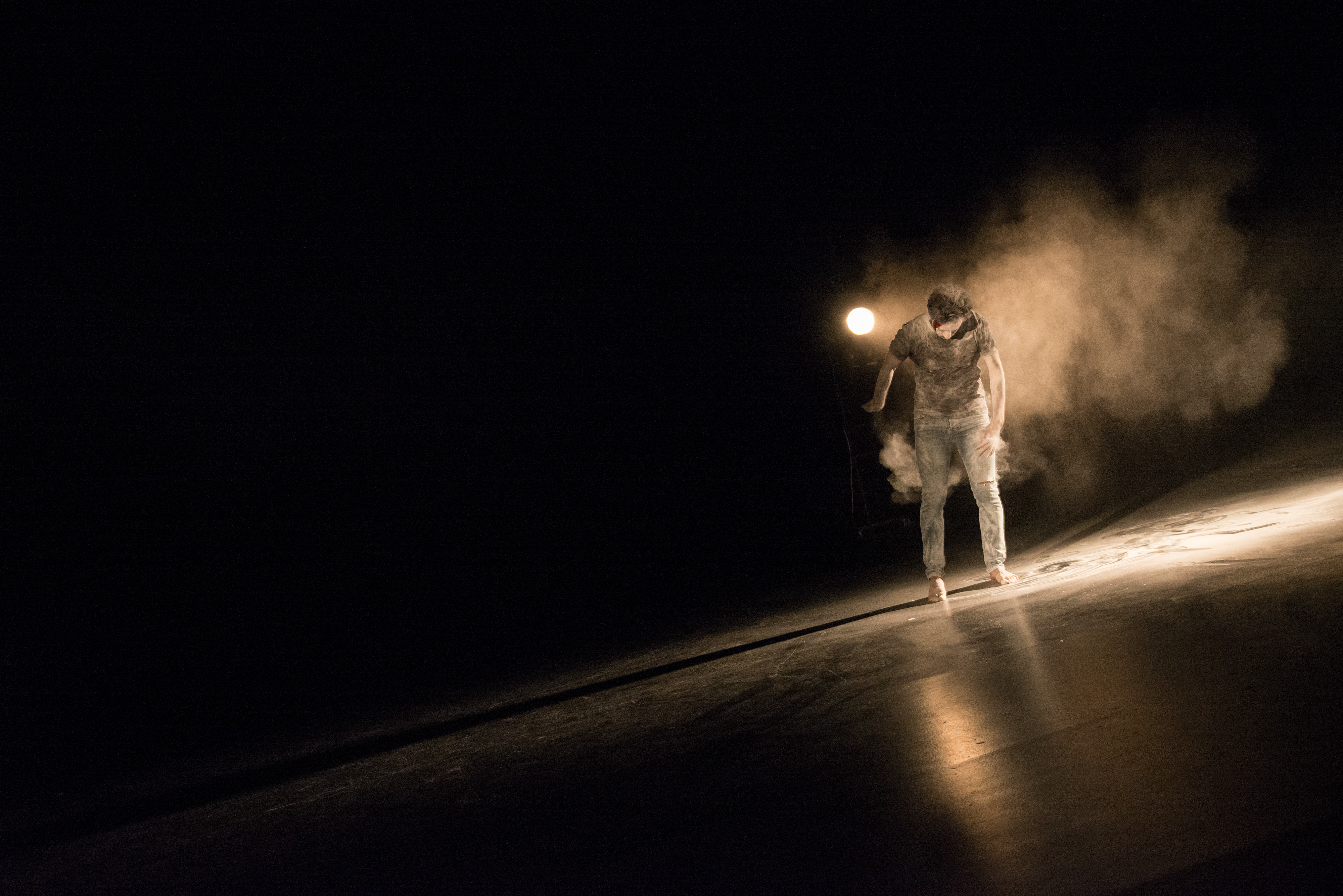 The dance performance Dust deals with the fate of the city of Aleppo, and counterparts from the affected cities in Syria and elsewhere in the world. Through a Syria character stand's up from the rubble of the devastated city, screaming through his body in the face of savagery, the silent world about the new massacre. Screaming in the face of isolation imposed on him, he is doomed and alone in his fate. Then the character try's to blend into a contemporary human figure, to simulate the profound solitude that experienced in the face of large events such as terrorism and extremism. The fear is a siege for movement for transmission to the cool stillness. Dust creates limited in space and movement.