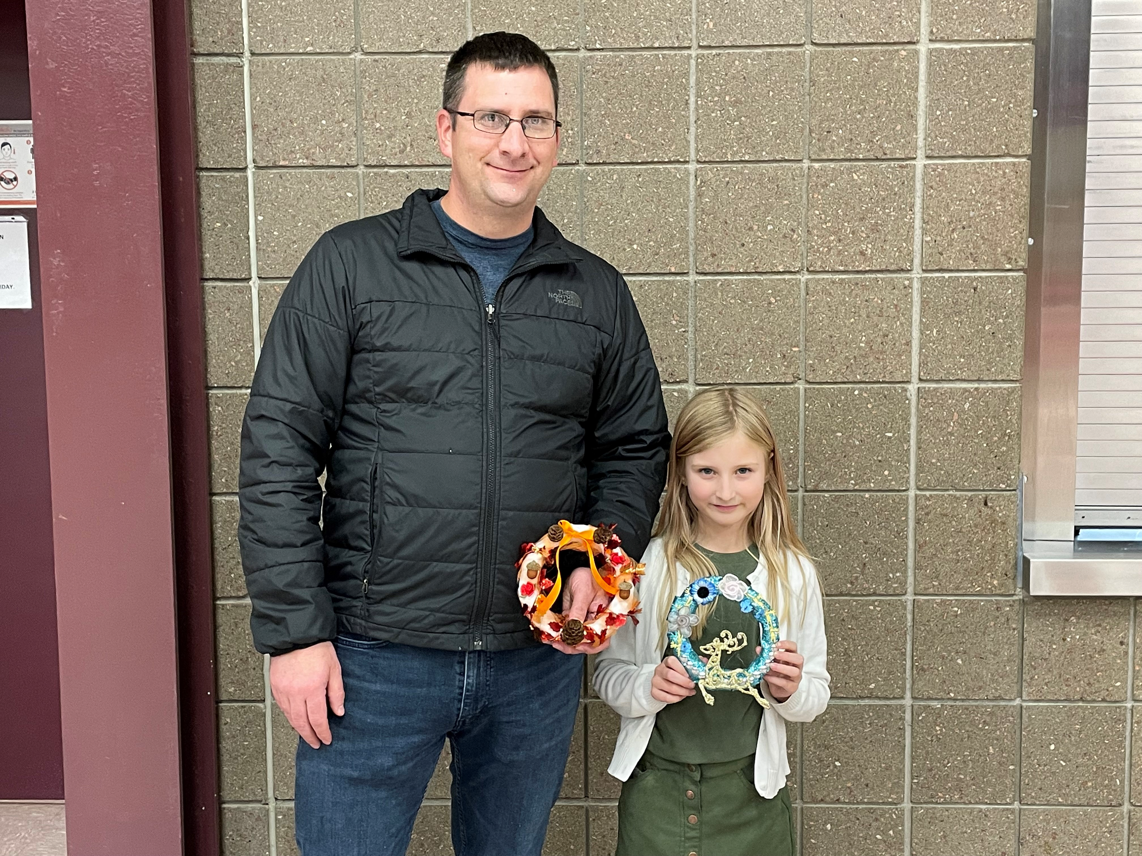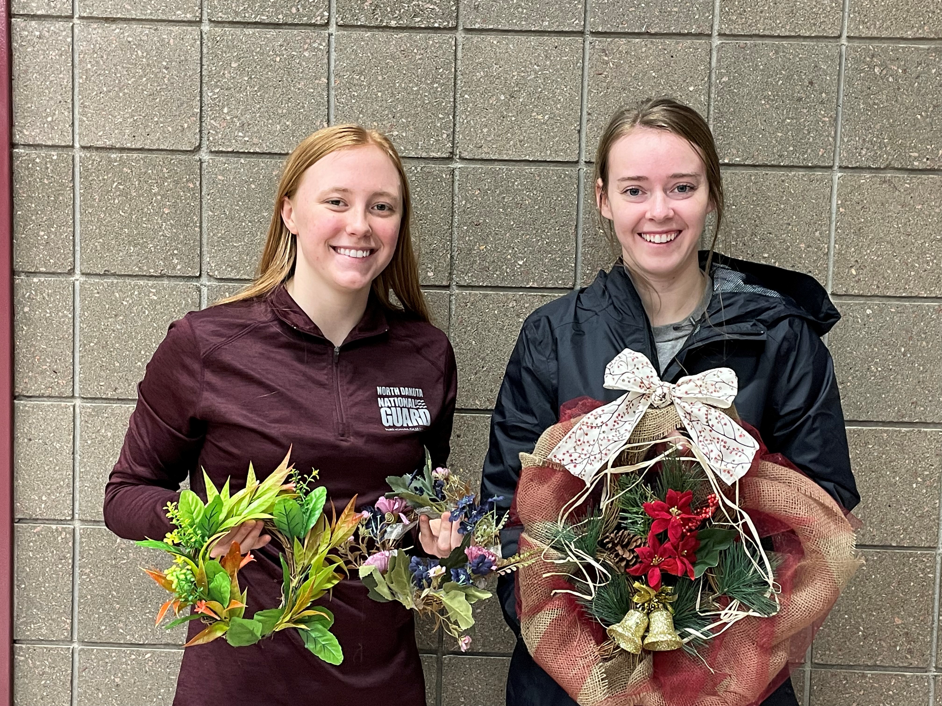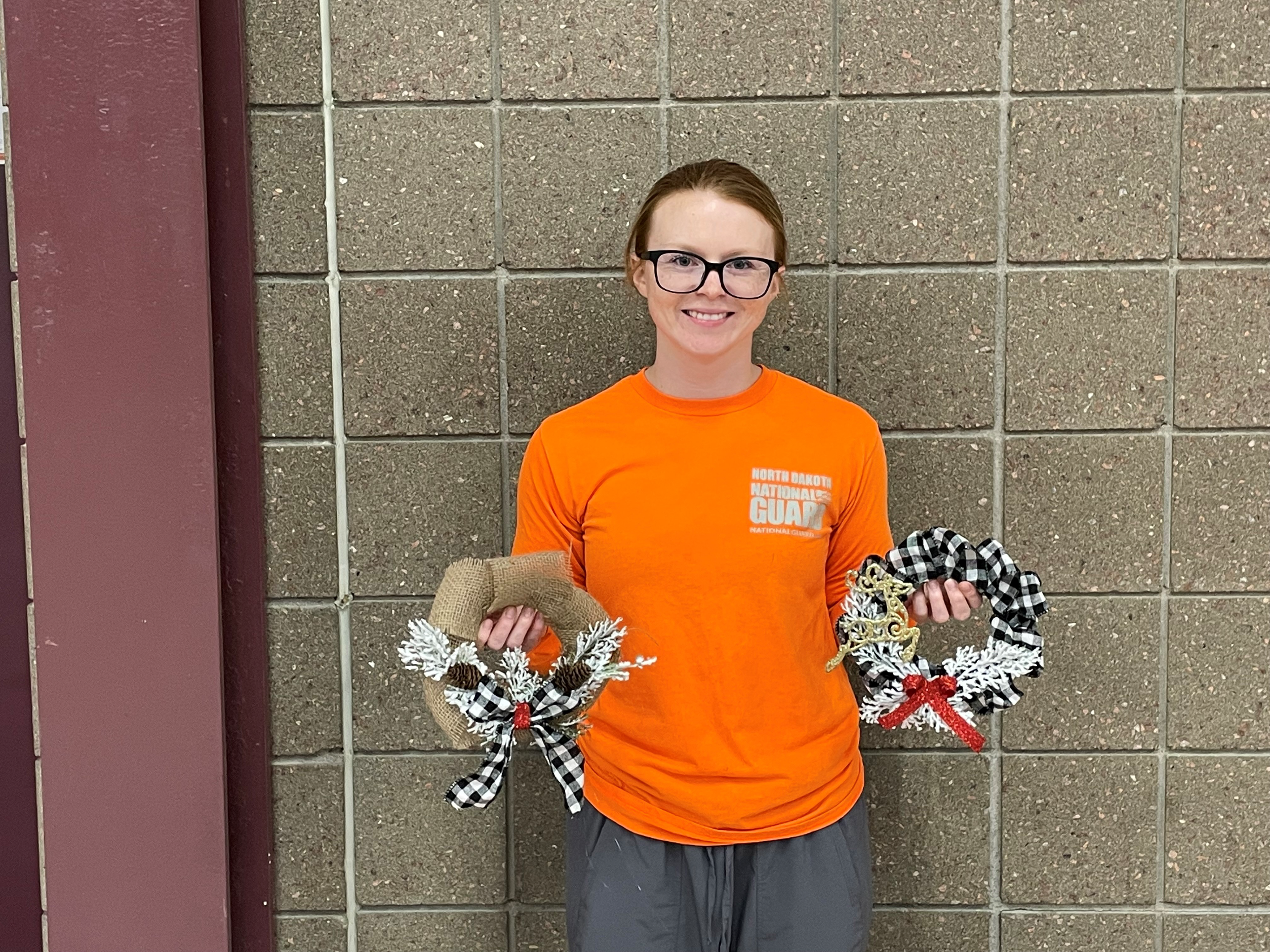 Family members from Camp Grafton Training Center show off their holiday wreaths in Devils Lake, Nov. 8, 2021.