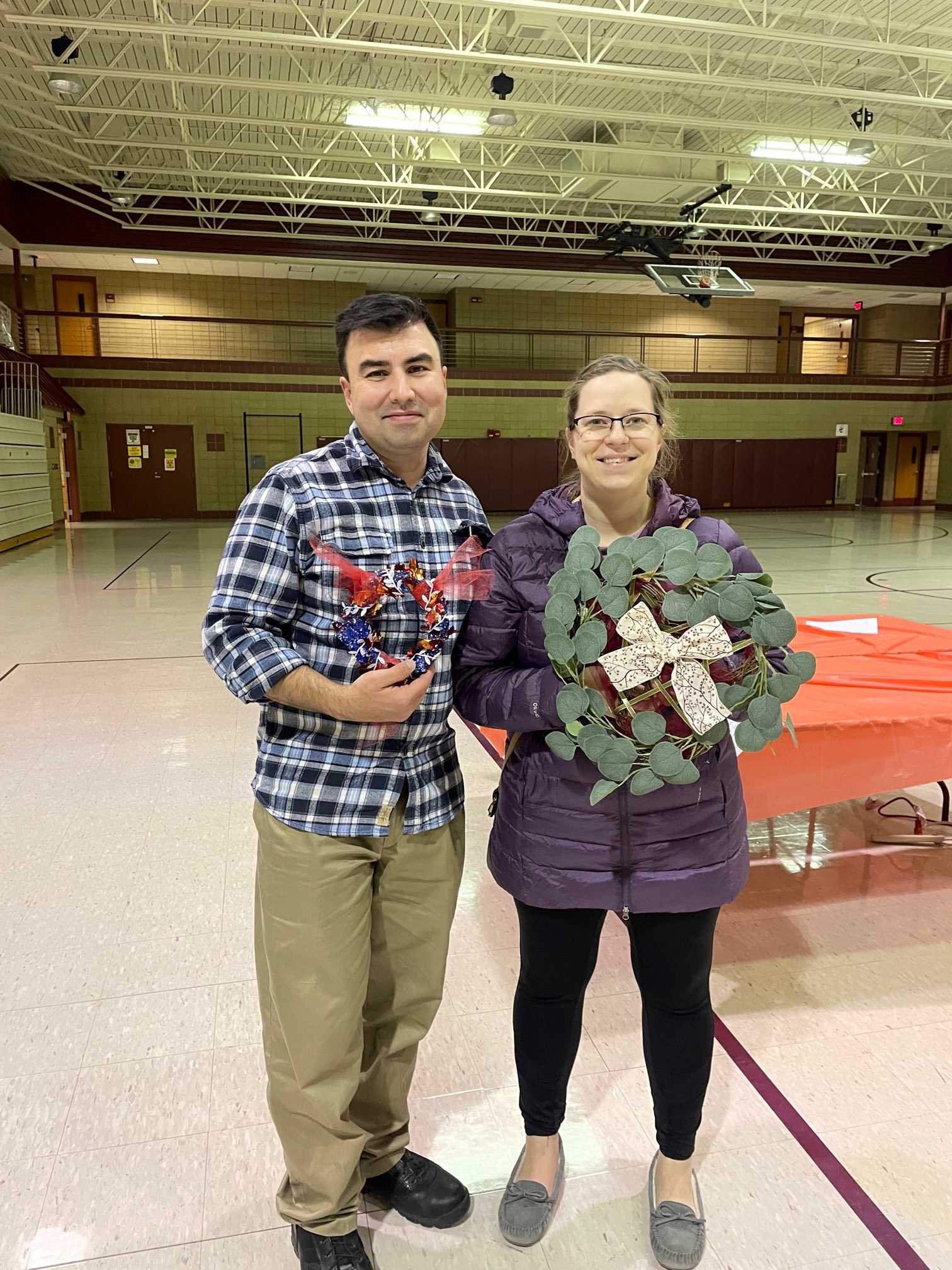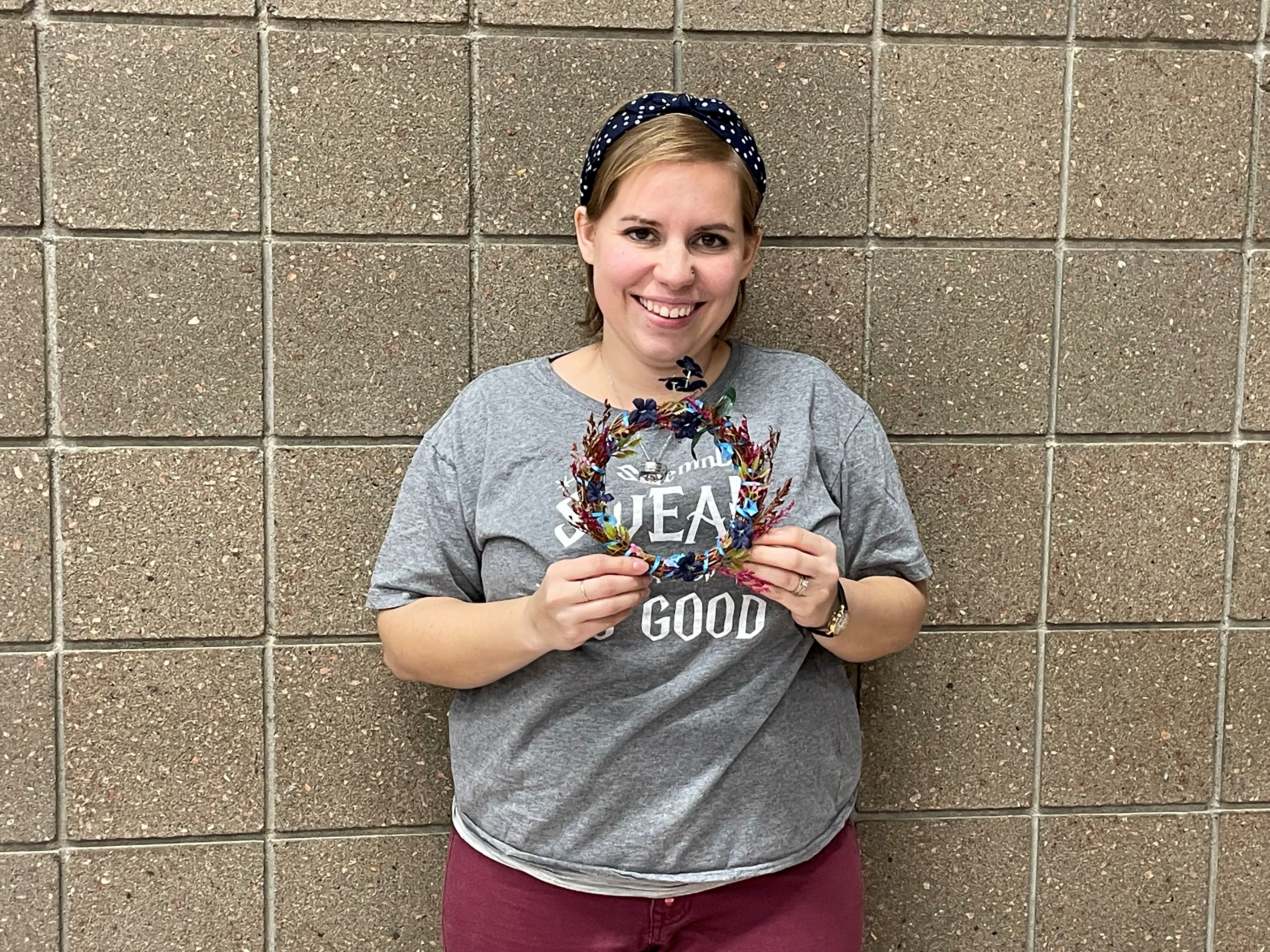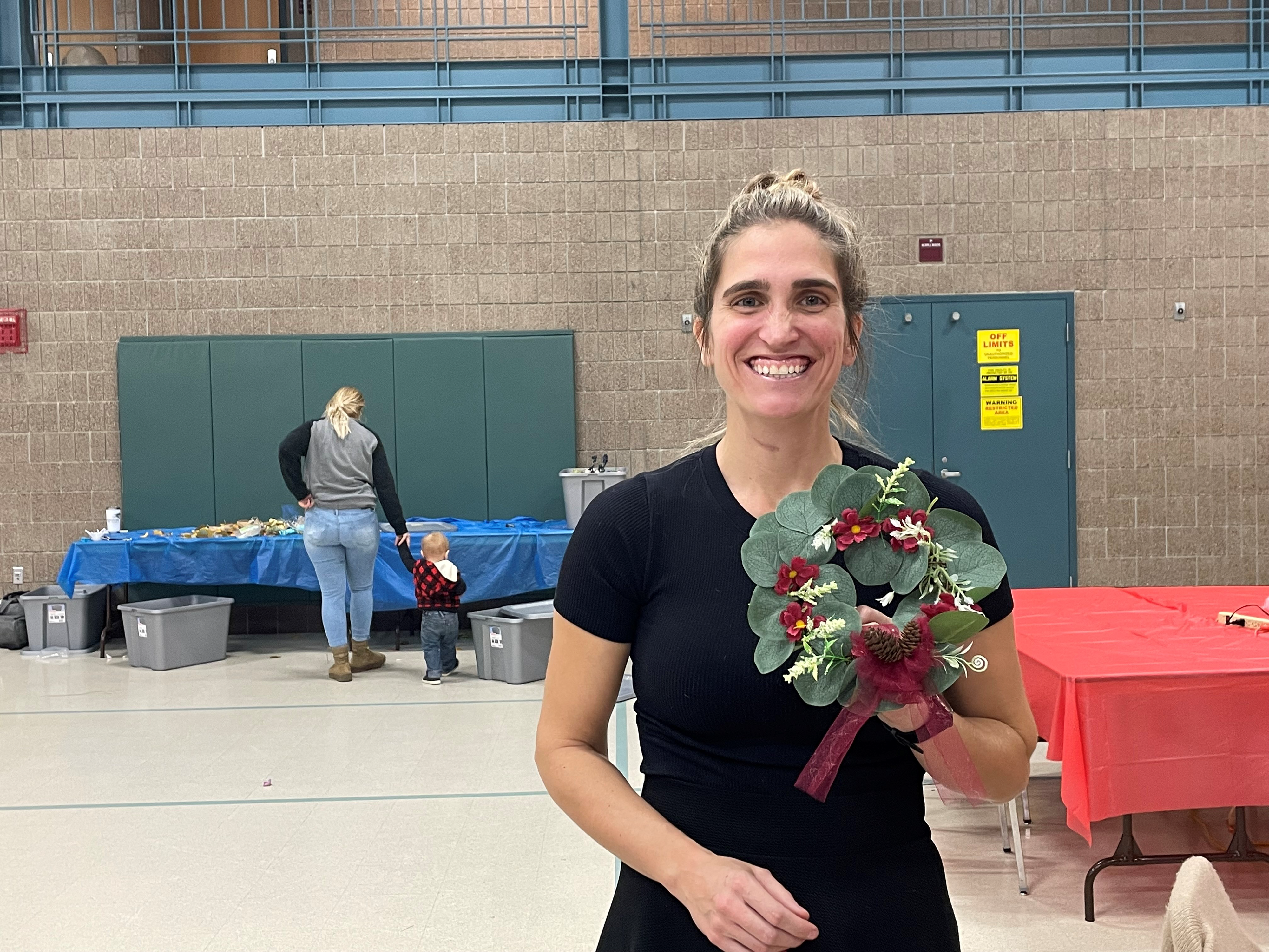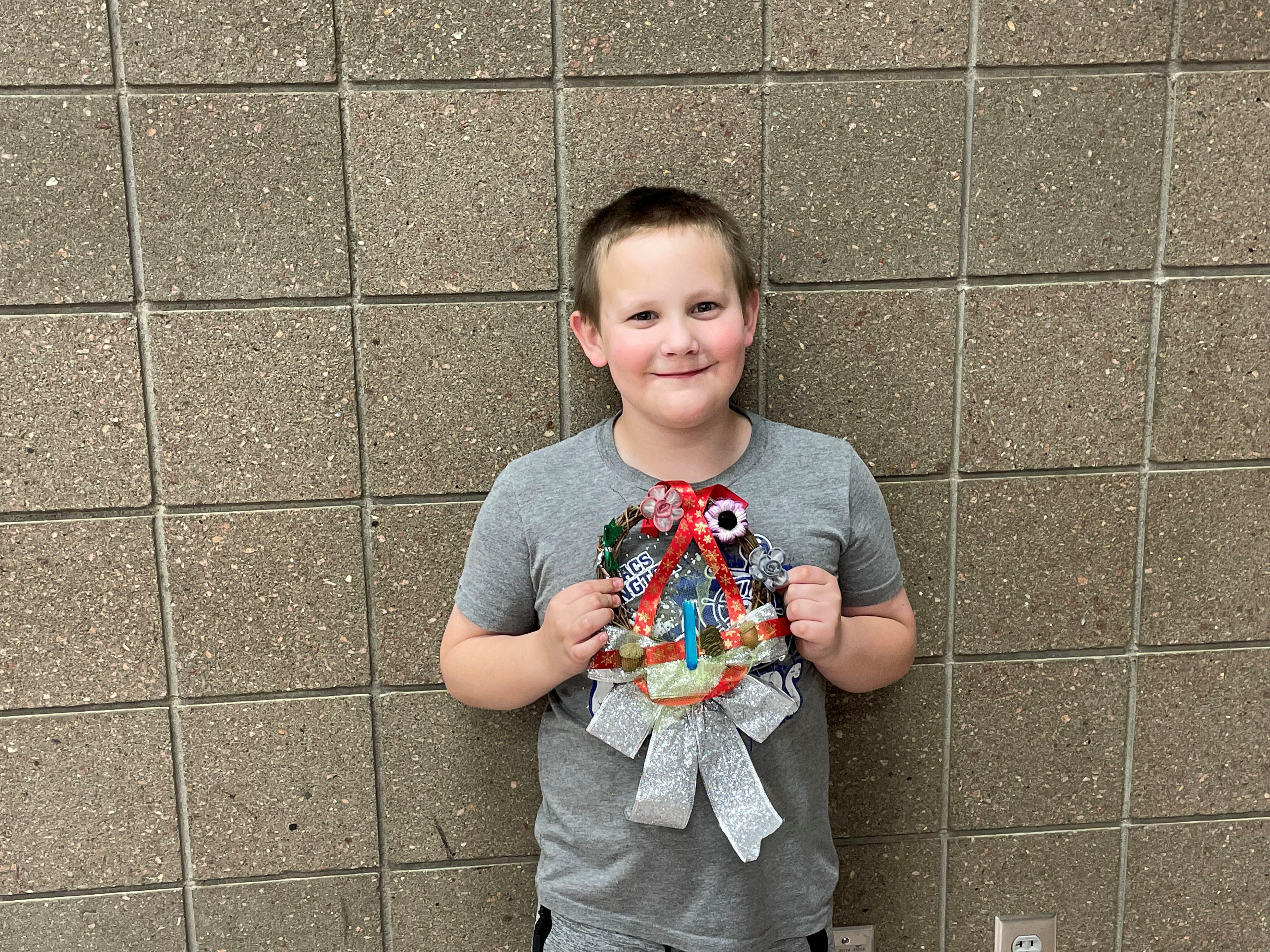 Family members from Camp Grafton Training Center show off their holiday wreaths in Devils Lake, Nov. 8, 2021.