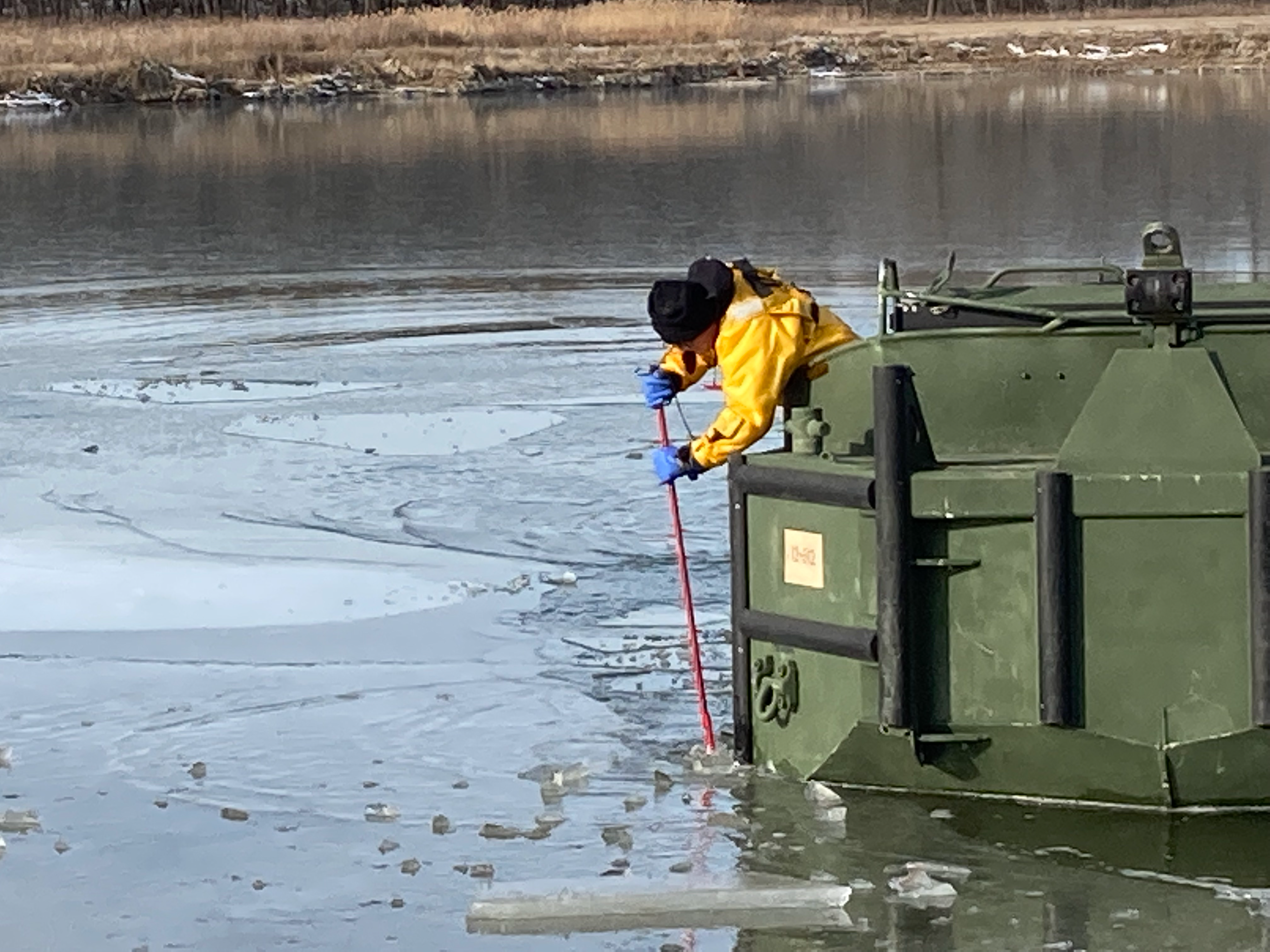 So far, only the BEB has been launched into the icy waters. Eventually, the IRB panel will also be deployed and tested for operating limits. Testing and developing of bridging employment procedures for ice-covered waters will continue throughout this winter. In January, employees of the U.S. Army Corps of Engineers’ EDRC are scheduled to travel to CGTC to work with the N.D. Guard instructors.