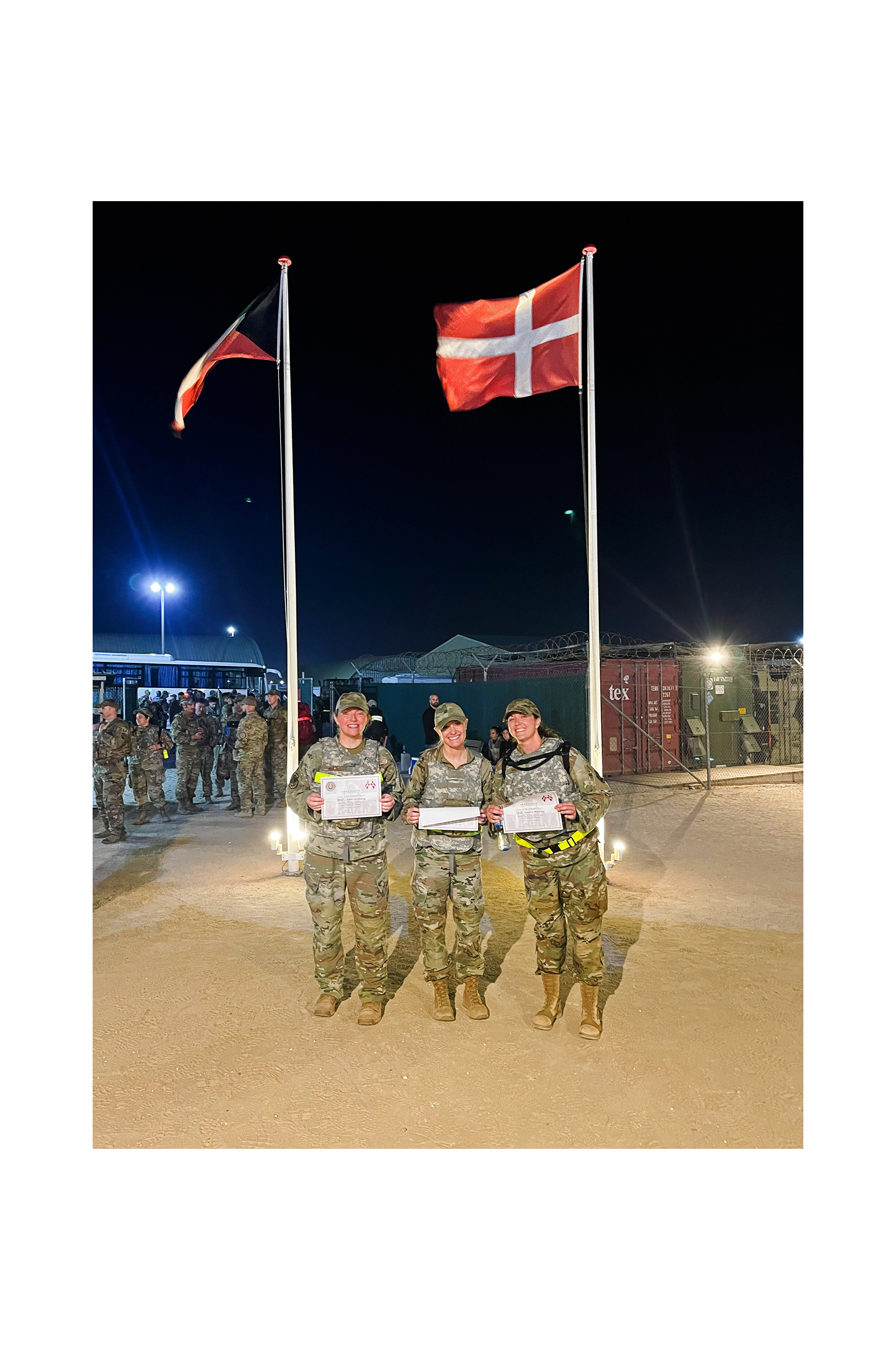 Several deployed Happy Hooligans serving in the 386th Air Expeditionary Wing at Ali Al Salem Air Base, Kuwait, participated in the Danish Contingent (DANCON) Ruck March Nov. 27, 2021. (National Guard story and photos by Senior Master Sgt. Erica Carruth, 119th Military Personnel Flight superintendent)