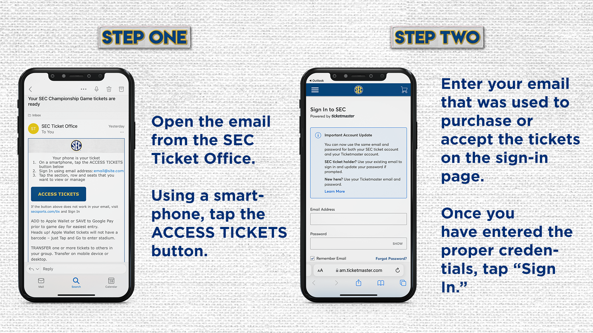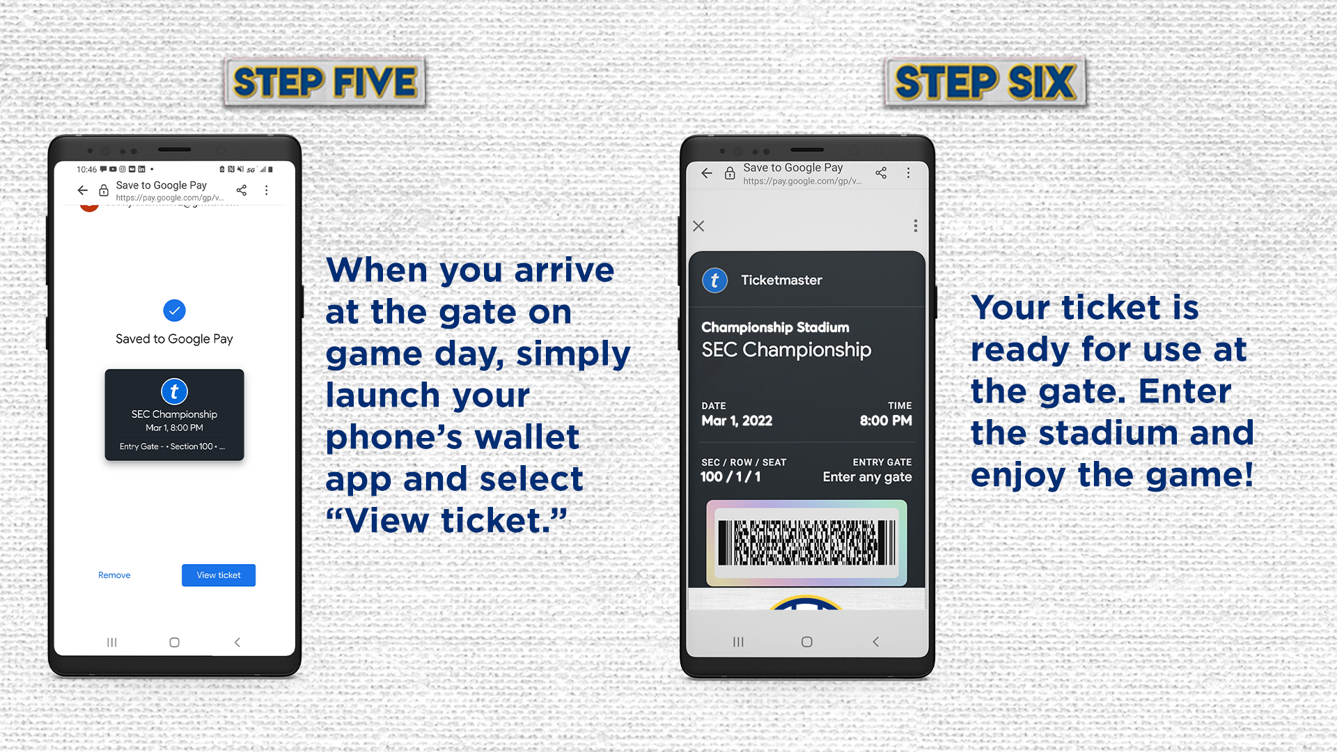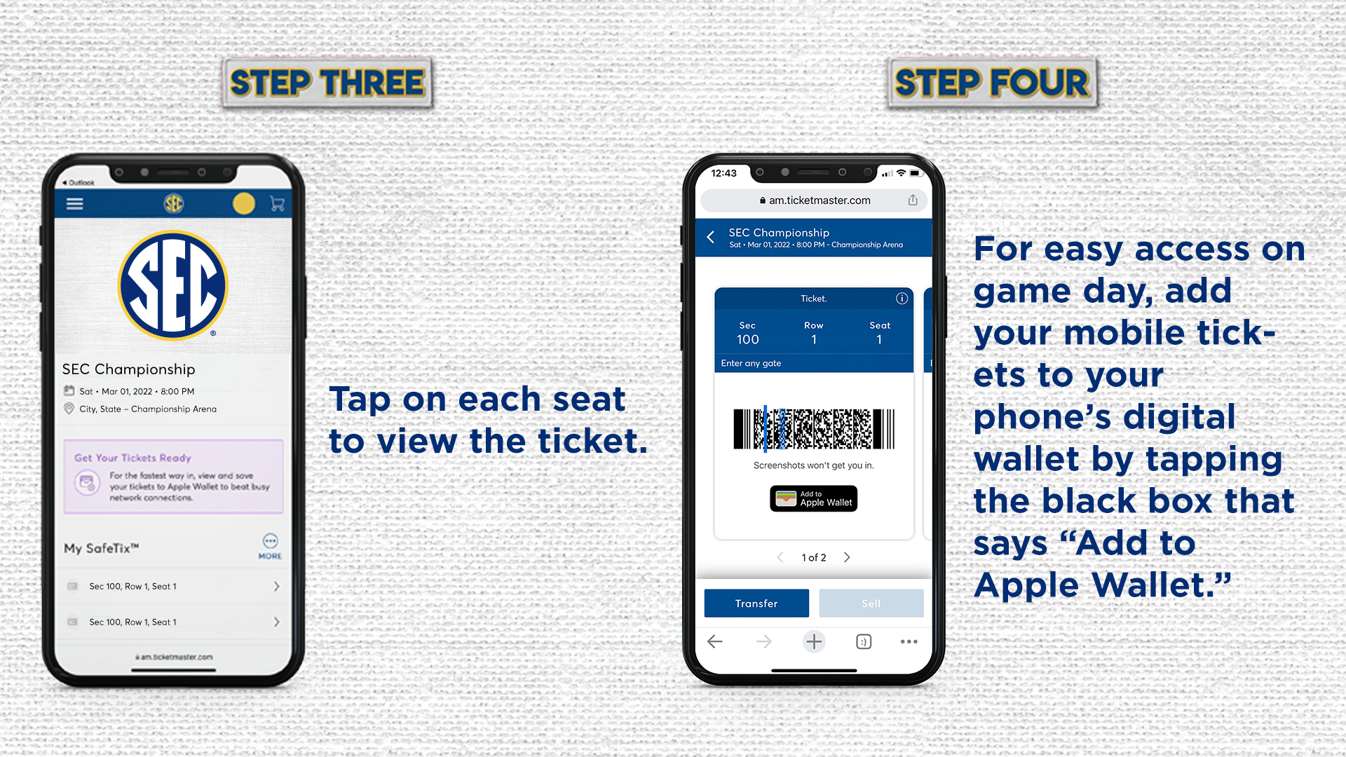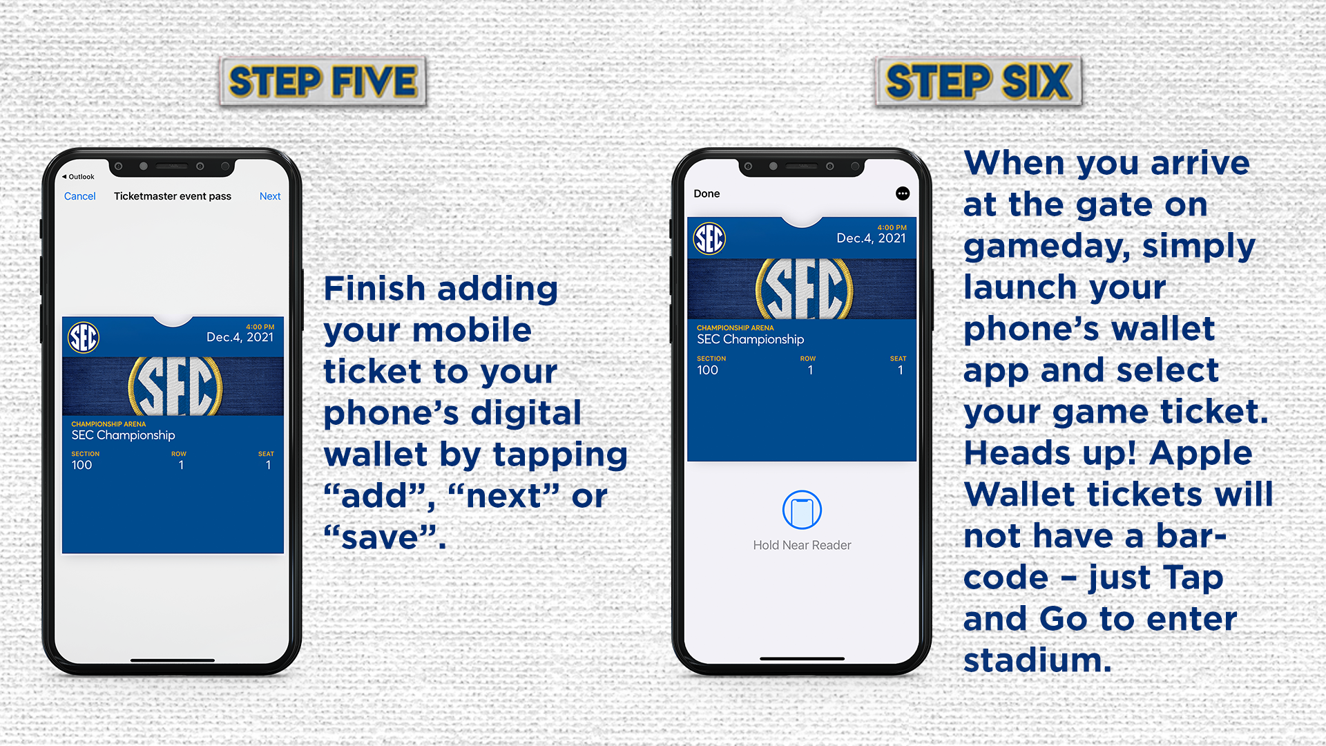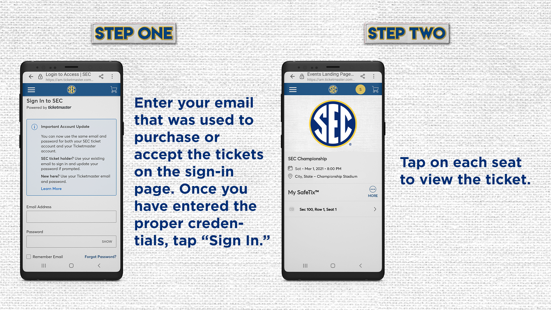 The Southeastern Conference utilizes a fully mobile ticketing experience at SEC Championship events. Make sure your seatbelt is securely fastened, and enjoy the trip!