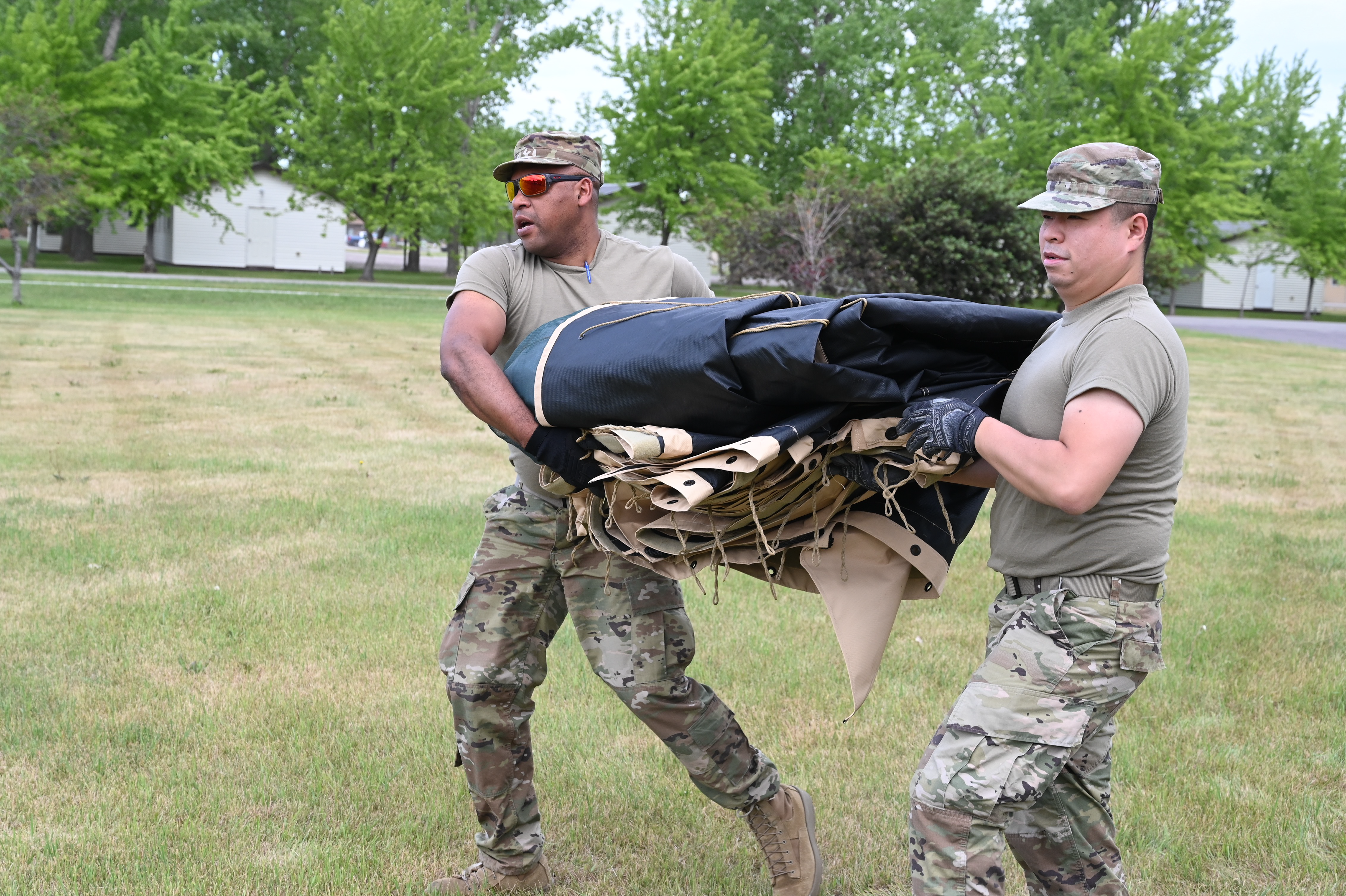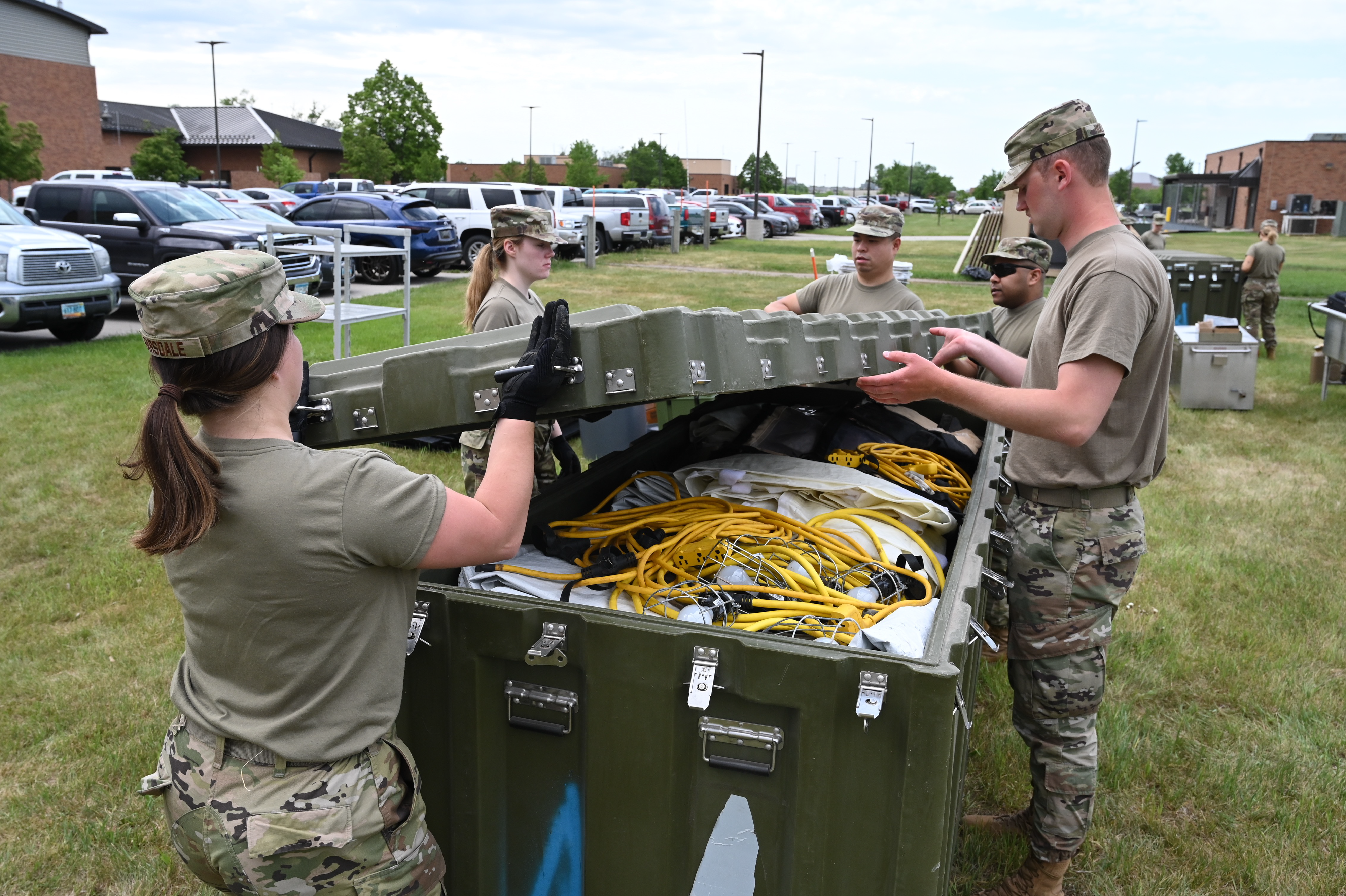 Photo: Tech. Sgt. Will Case, 119th Services Flight, prepares an arch in the assembly of a single pallet expeditionary kitchen (SPEK) during a readiness exercise at the 119th North Dakota Air National Guard Base, Fargo, N.D., June 3, 2021.