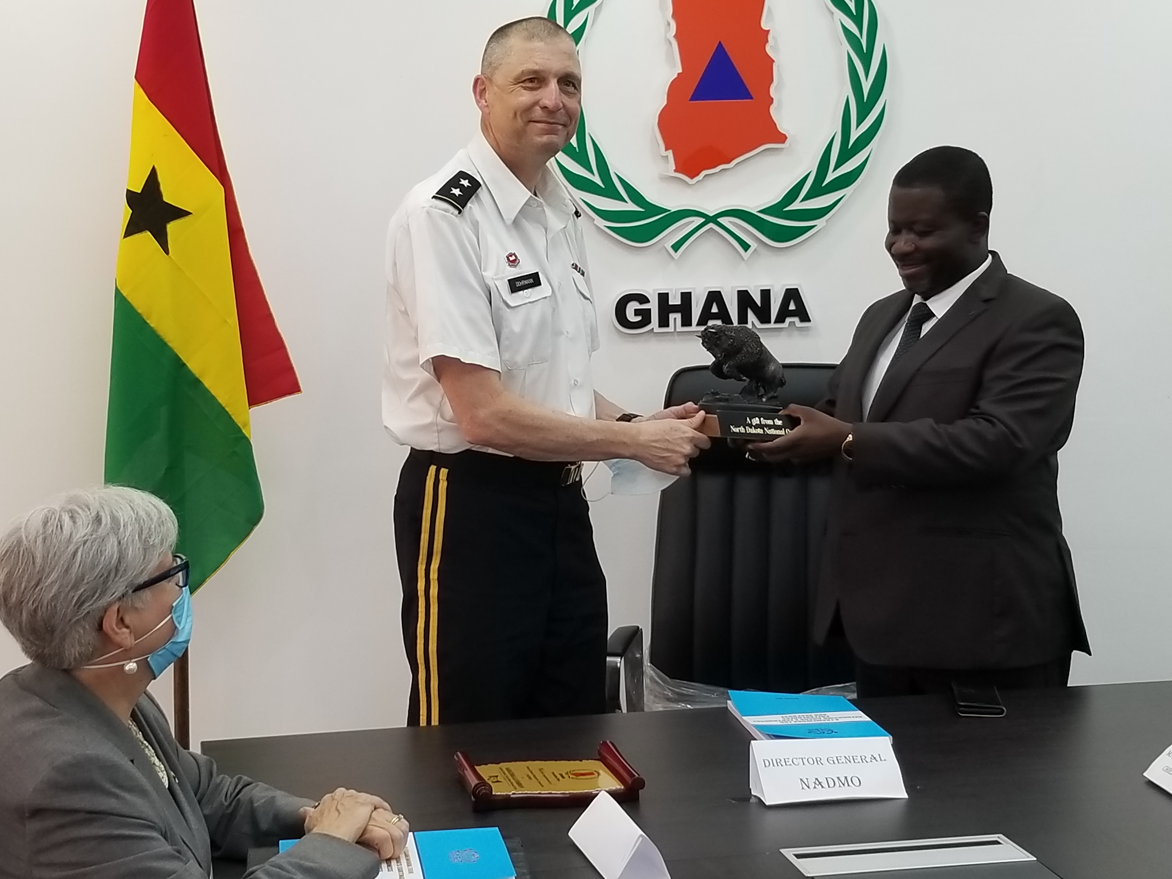 The U.S. Ambassador to Ghana, Stephanie Sullivan, led the U.S. delegation along with the U.S. Embassy to Ghana's political section chief, Chris Gunning. The Republic of Ghana, along with the Togolese Republic and Benin, is one three N.D. National Guard's west African partner nations.