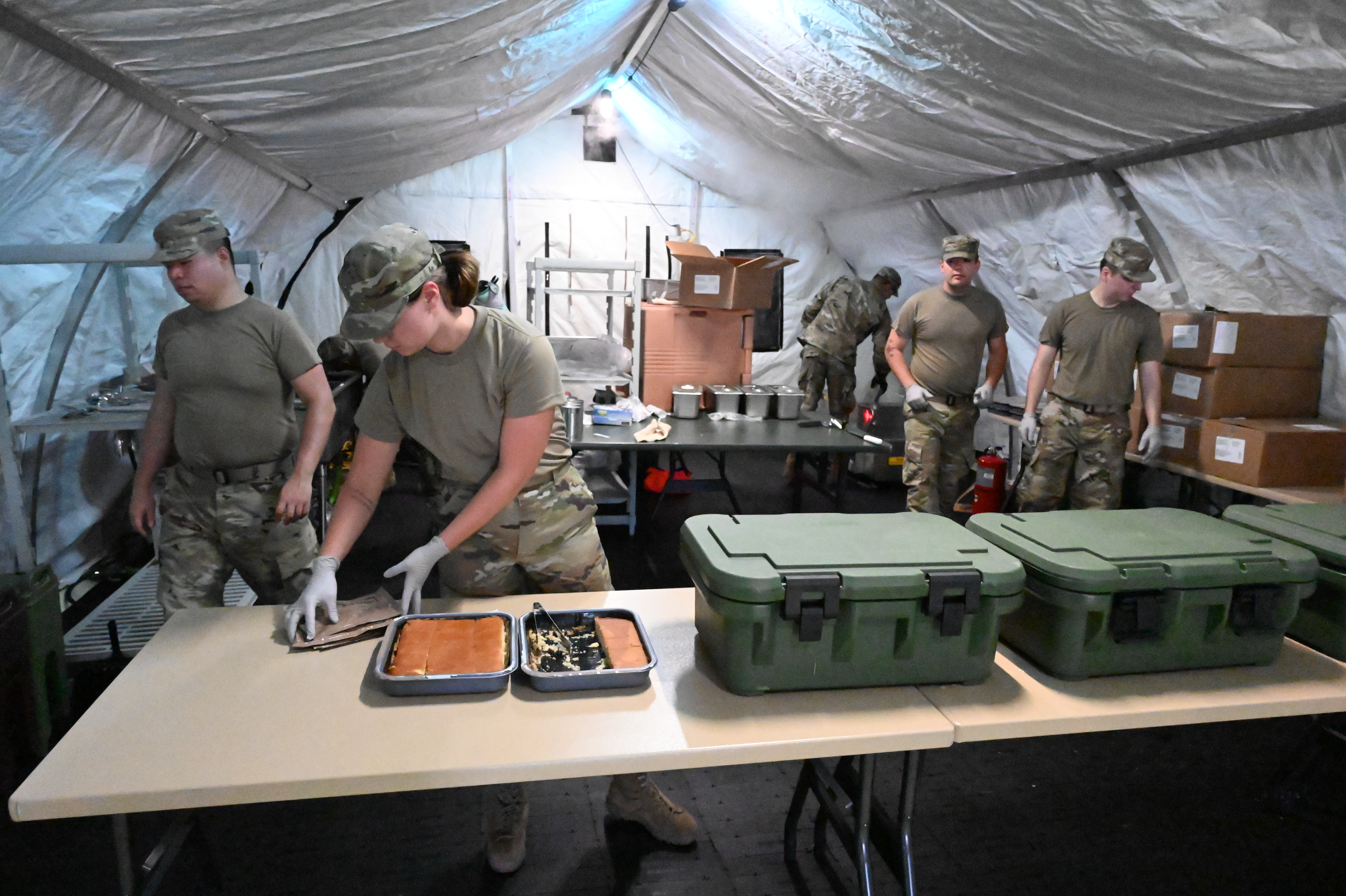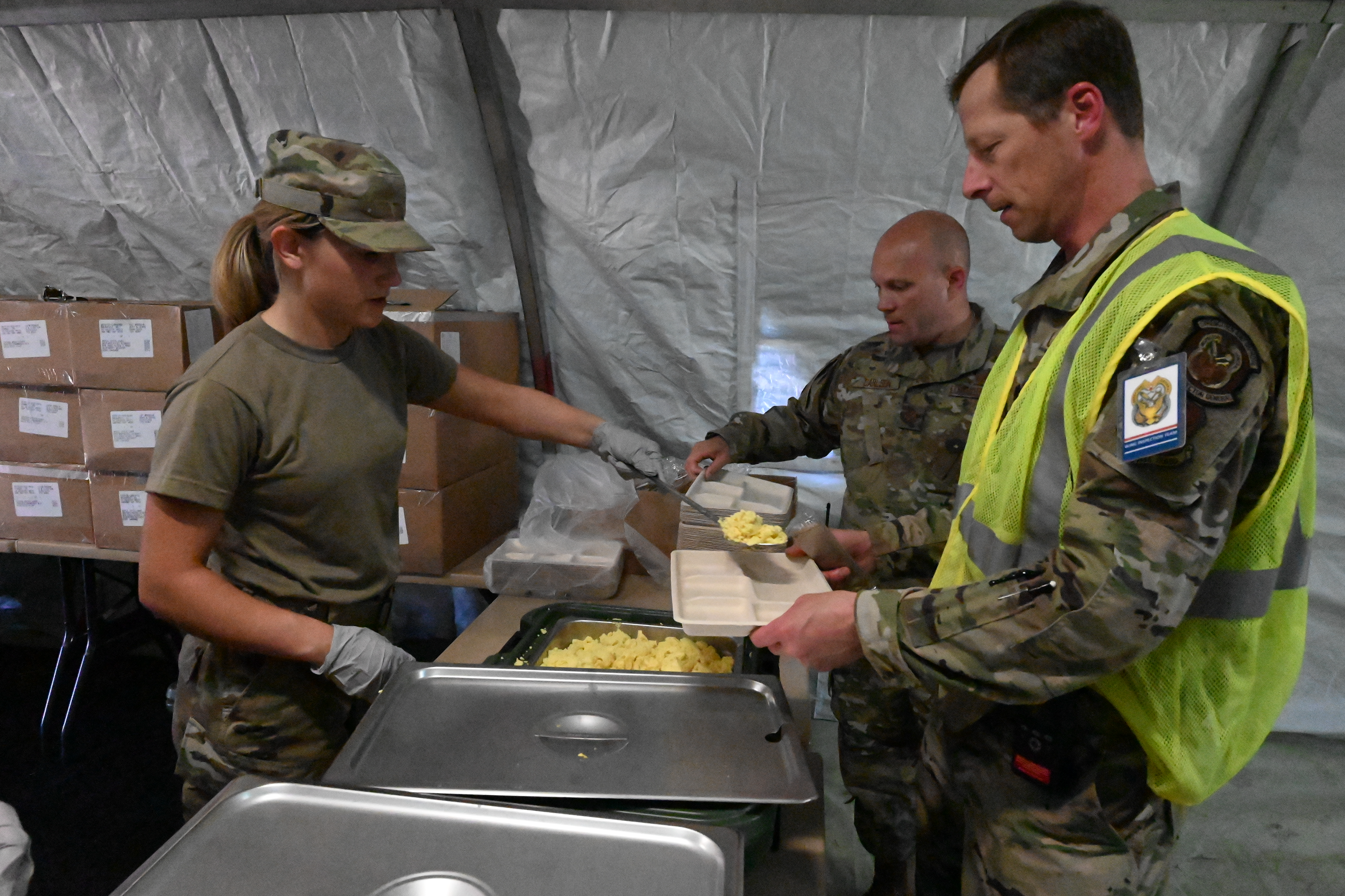 “While it is an annual requirement for personnel to train on the SPEK equipment, it is over and above to actually feed out of it, especially to a capacity of over 500. We are hoping it leads to good team-building,” said Master Sgt. Samantha Kolness, 119th Services Flight superintendent.