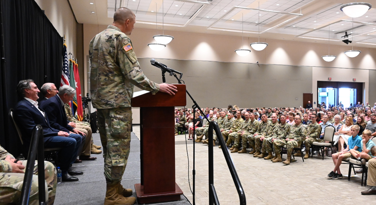 Rendering remarks in recognition of the deploying Soldiers were Gov. Doug Burgum, commander-in-chief for the N.D. National Guard; Sen. John Hoeven; Sen. Kevin Cramer; Maj. Gen. Al Dohrmann, N.D. adjutant general; and Command Sgt. Maj. Eric Binstock, senior enlisted leader for the N.D. National Guard. The 1-188th ADA is commanded by Lt. Col. Walyn Vannurden and the senior enlisted Soldier is Command Sgt. Maj. Russ Garrett.