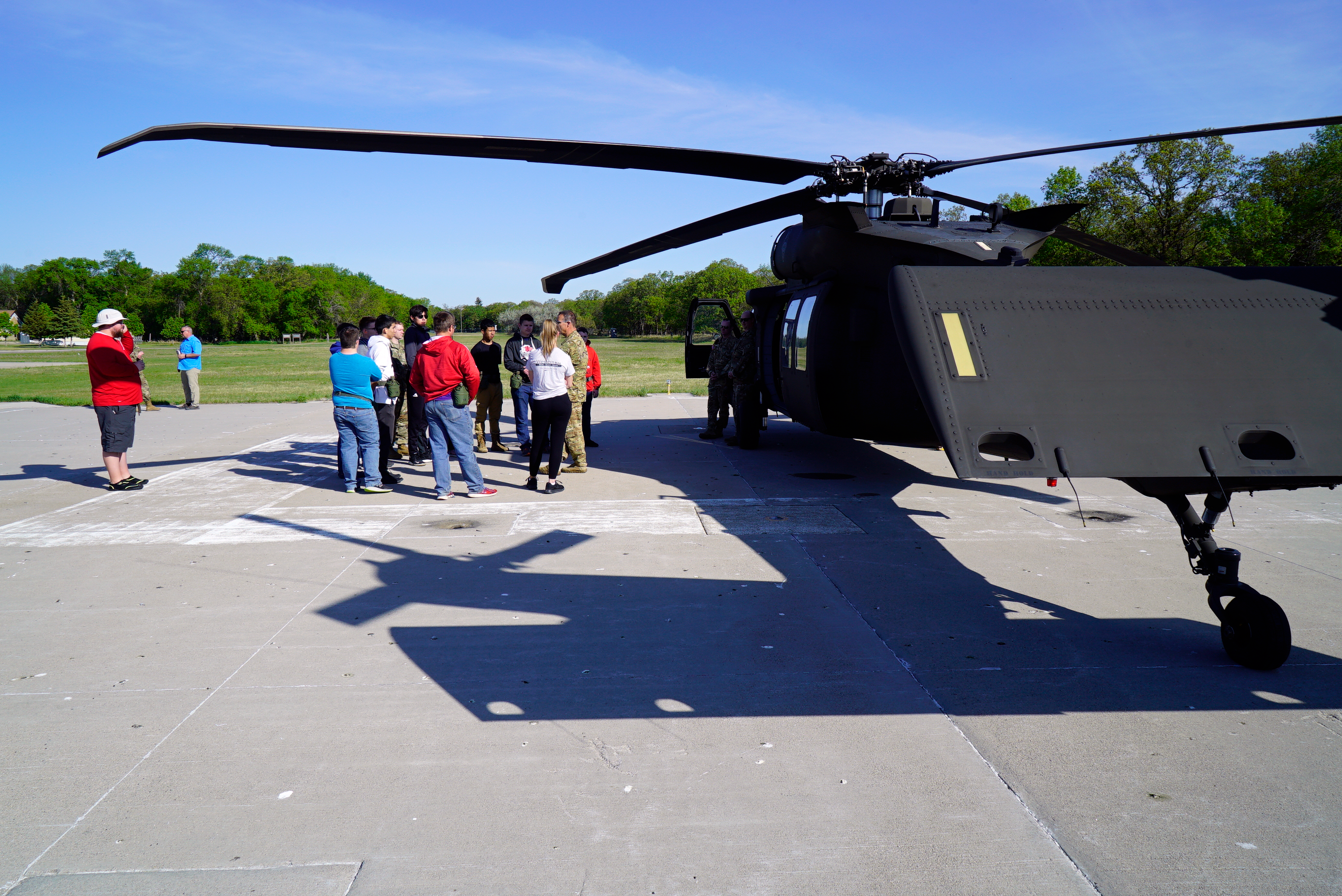 Photo: Col. Paul Helten, State Army Aviation Officer, provides Devils Lake High School's JROTC cadets a safety briefing prior to their orientation flight aboard a UH-60 Black Hawk helicopter at Camp Grafton Training Center, June 2, 2021. (National Guard photo by Sgt. 1st Class Charles Highland, N.D. National Guard Public Affairs Office.)