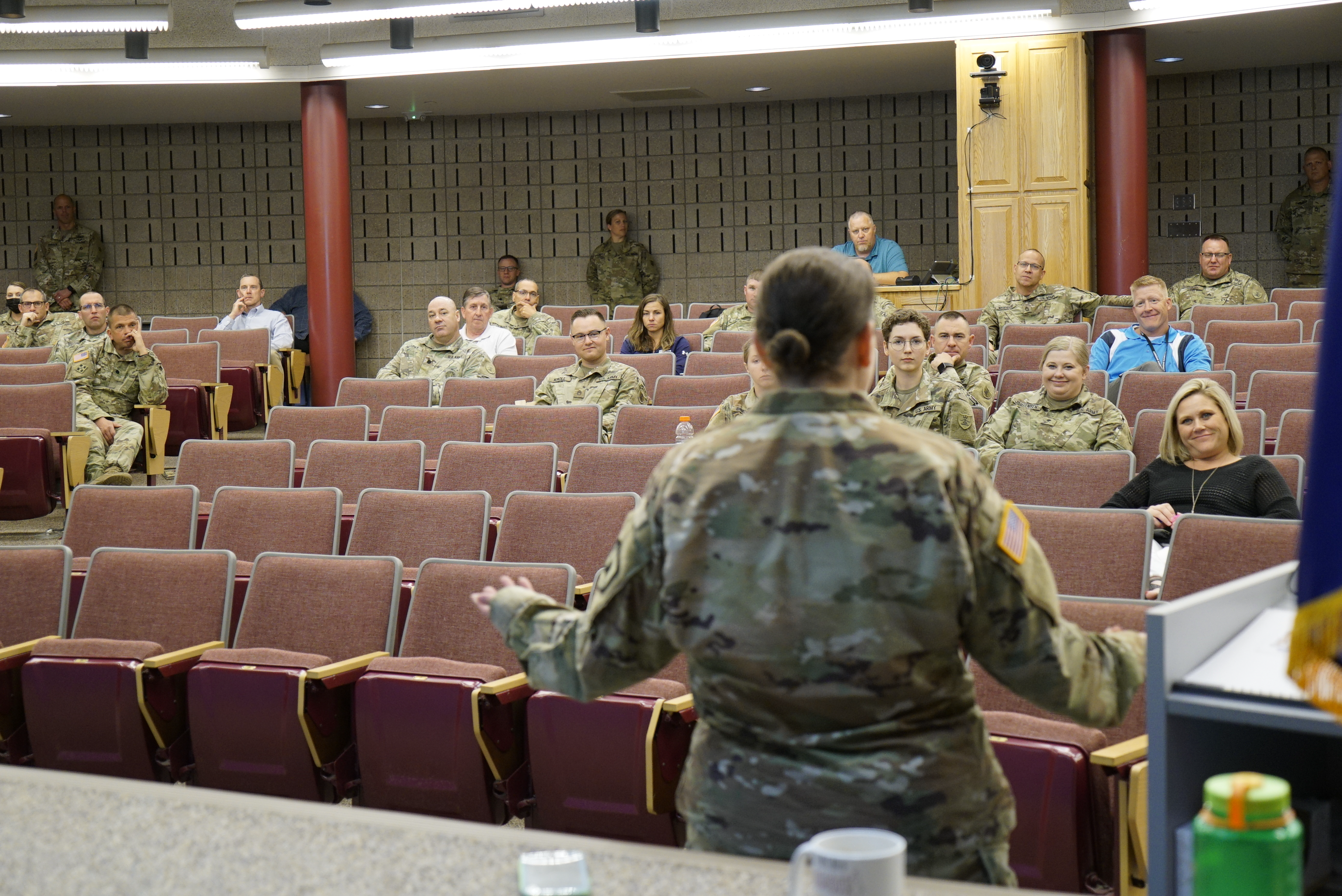 Maj. Rachael Berg, Human Resource Specialist, hosted this month's professional development on "Active Listening" at the Raymond J. Bohn armory, Bismarck, June 9, 2021. Active listening teaches you to listen to your conversation partner and to stay engaged in a positive way. The process encourages the listener to make eye contact, paraphrase, and reflect back on what is said before providing your input. (National Guard story and photos by Sgt. 1st Class Charles Highland, N.D. National Guard Public Affairs Office)