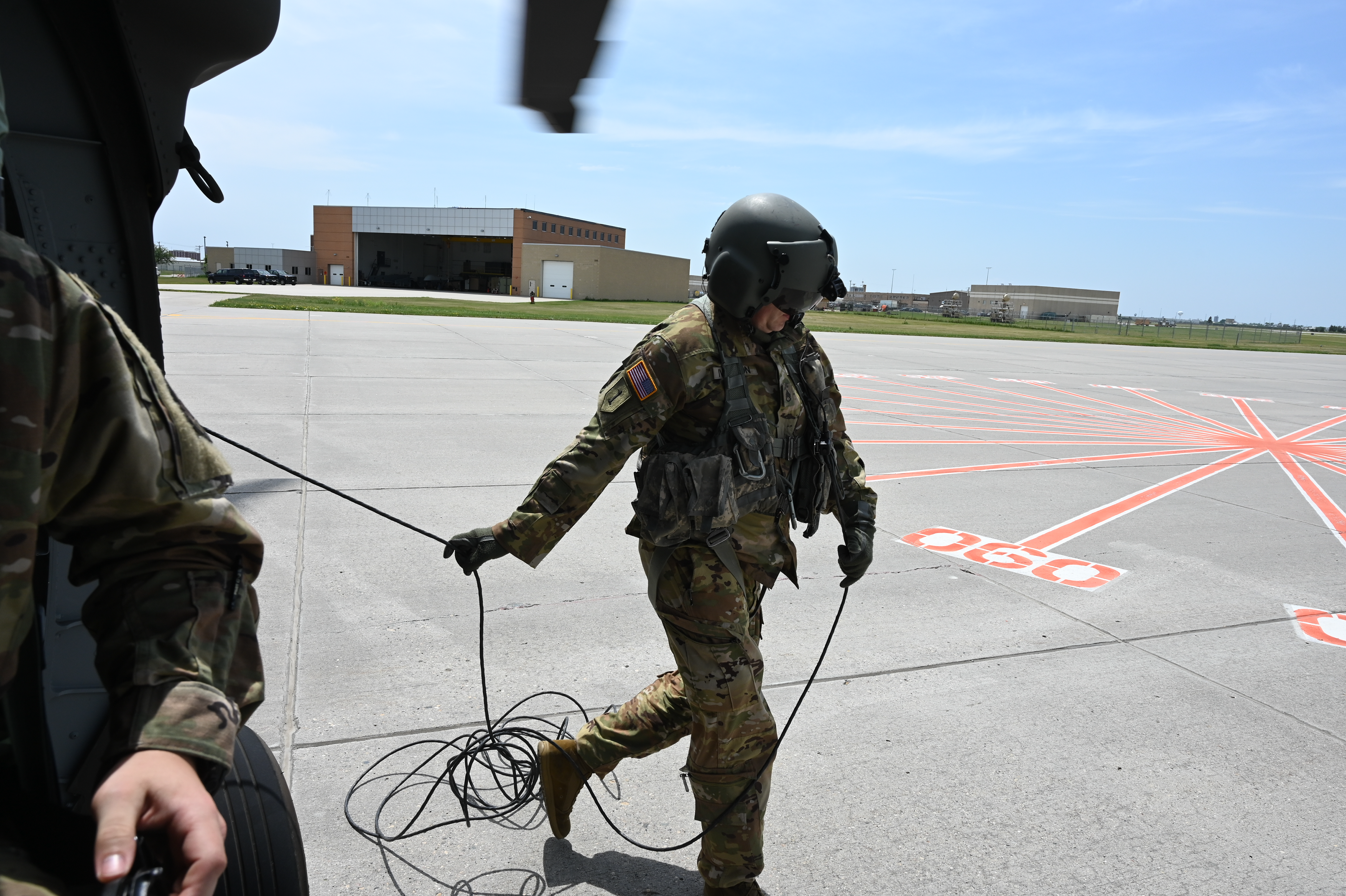 A N.D. National Guard Airman flies in a North Dakota Army National Guard UH-60 Black Hawk helicopter as part of Exercise Victory Hooligan hosted at the N.D. Air National Guard Base, Fargo, N.D., June 8, 2021.