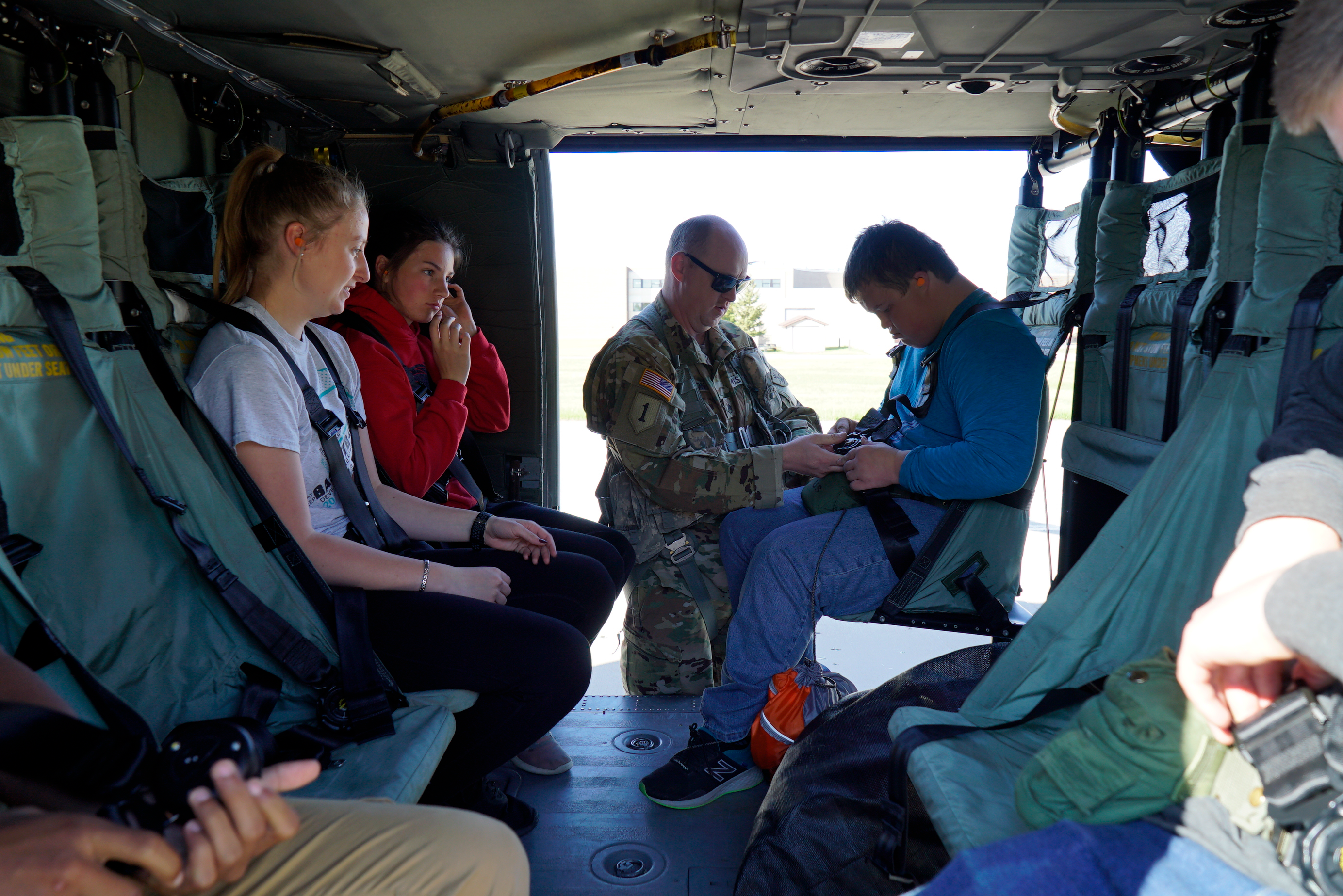 A North Dakota Army National Guard's UH-60 Black Hawk helicopter crew provided Devils Lake High School's Junior Reserve Officers' Training Corps (JROTC) cadets orientation flights over Camp Grafton Training Center, June 2, 2021. The purpose of the flights is to demonstrate Army aviation capabilities to the cadets. In addition to the orientation flights, the JROTC cadets enjoyed three days at CGTC learning about military service and how Soldiers train. (National Guard story and photos by Sgt. 1st Class Charles Highland, N.D. National Guard Public Affairs Office.)