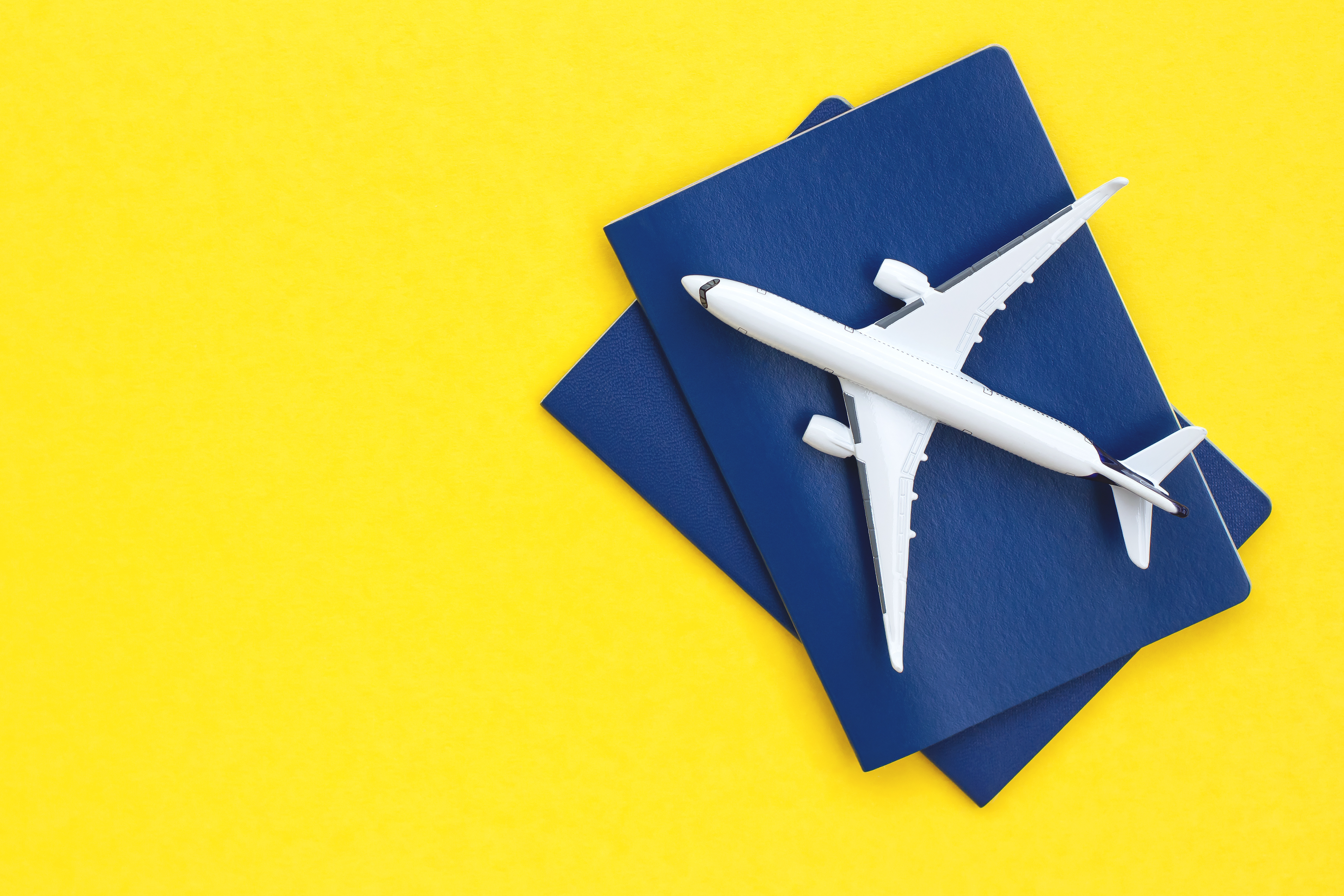 Created with images by Alexa Joy - "Model airplane lying on passports. Isolated white toy plane and documents. Travel concept. Place for your text" • Kseniya - "empty gallerys in museum" • epicraw - "Close up man hands holding champion golden trophy on transparent background Generative AI"