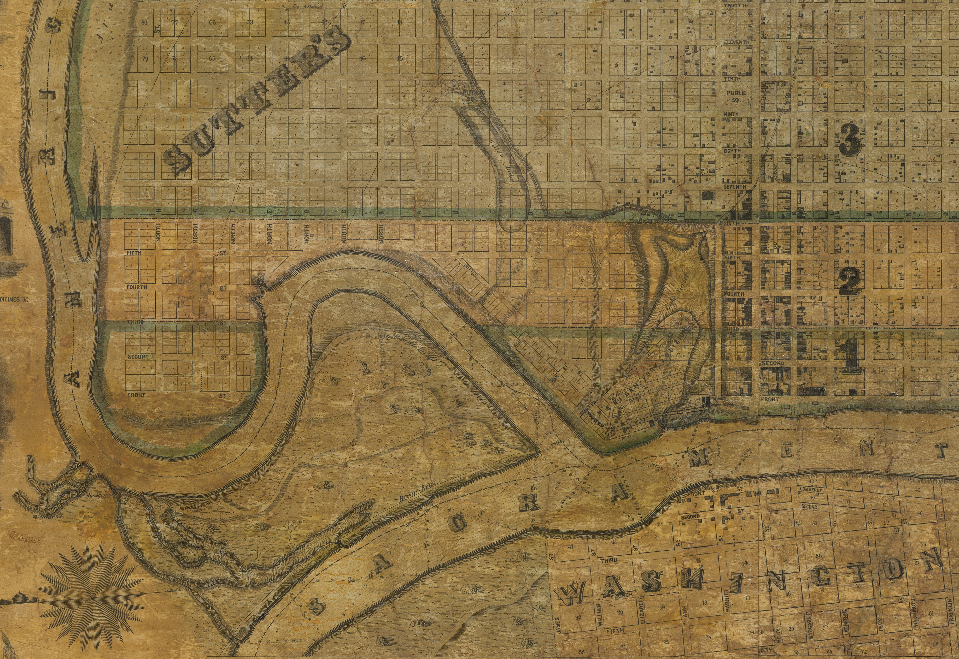 Imagen de fondo: "Plano de la ciudad de Sacramento, estado de California;” William Warner; 1850. Cortesía de LOC.