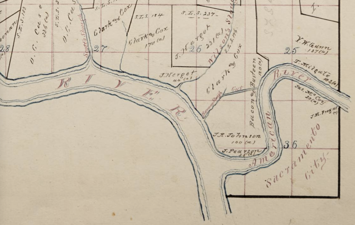 Mover el río tuvo un impacto enorme. En los mapas de la ciudad de Sacramento aparecen cadenas de parcelas ribereñas. Estas parcelas sugieren que alguien ya vivía aquí. Estos primeros pobladores perdieron su ribera.