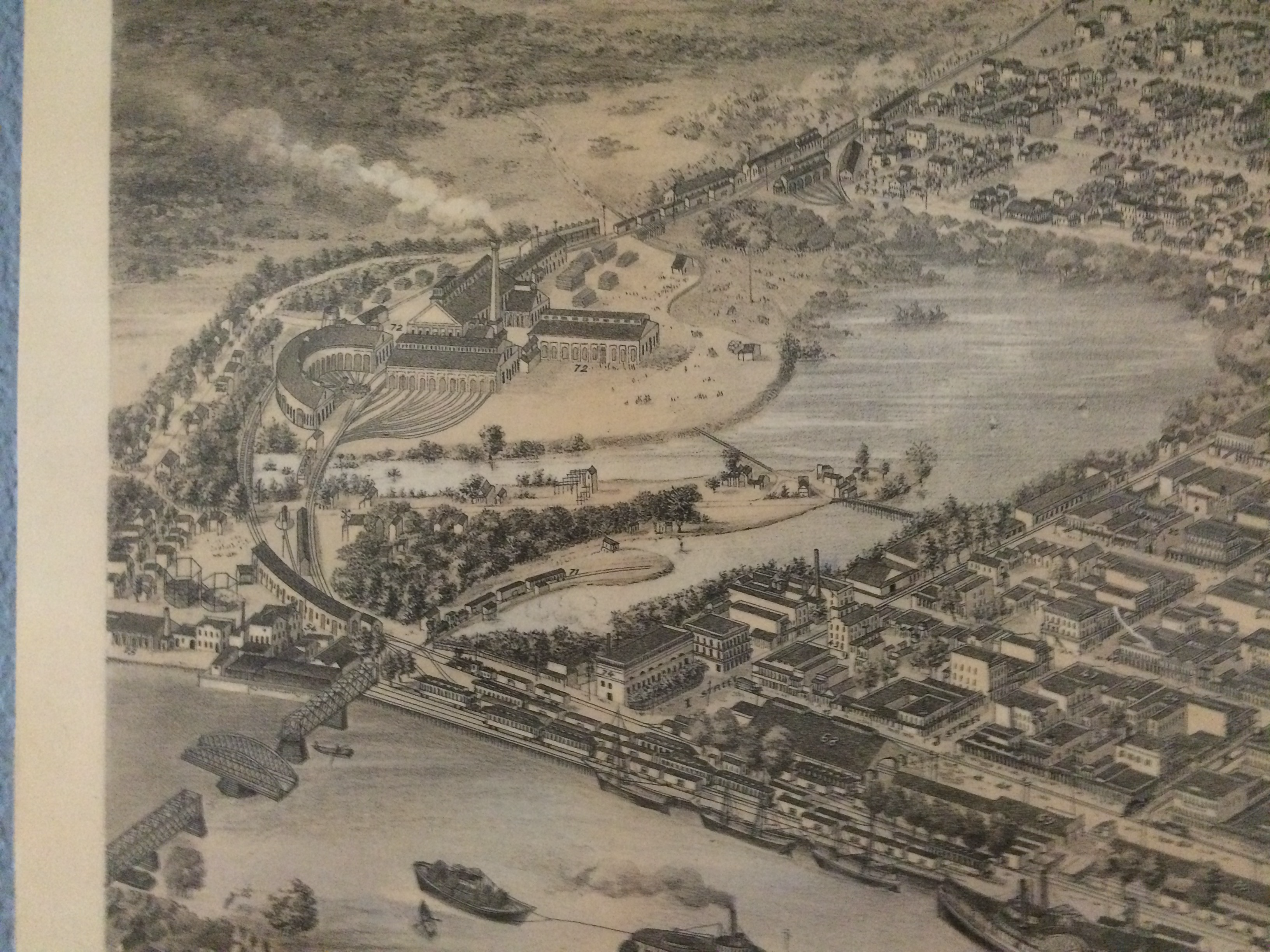 En 1913, Phinney, Cate y Marshall produjeron un mapa de la ciudad que mostraba un vestigio de ese mismo cruce ferroviario: una línea tenue que cruzaba el río. Este mapa también mostraba características históricas fantasmales que acechaban detrás de los límites de los actuales propietarios. Es una cartografía extraña.