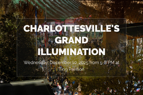 The City of Charlottesville presents the 28th Annual Grand Illumination at Ting Pavilion on the Downtown Mall! Due to inclement weather, the event has been rescheduled to Wednesday, December 10, 2025 from 5–8 p.m.