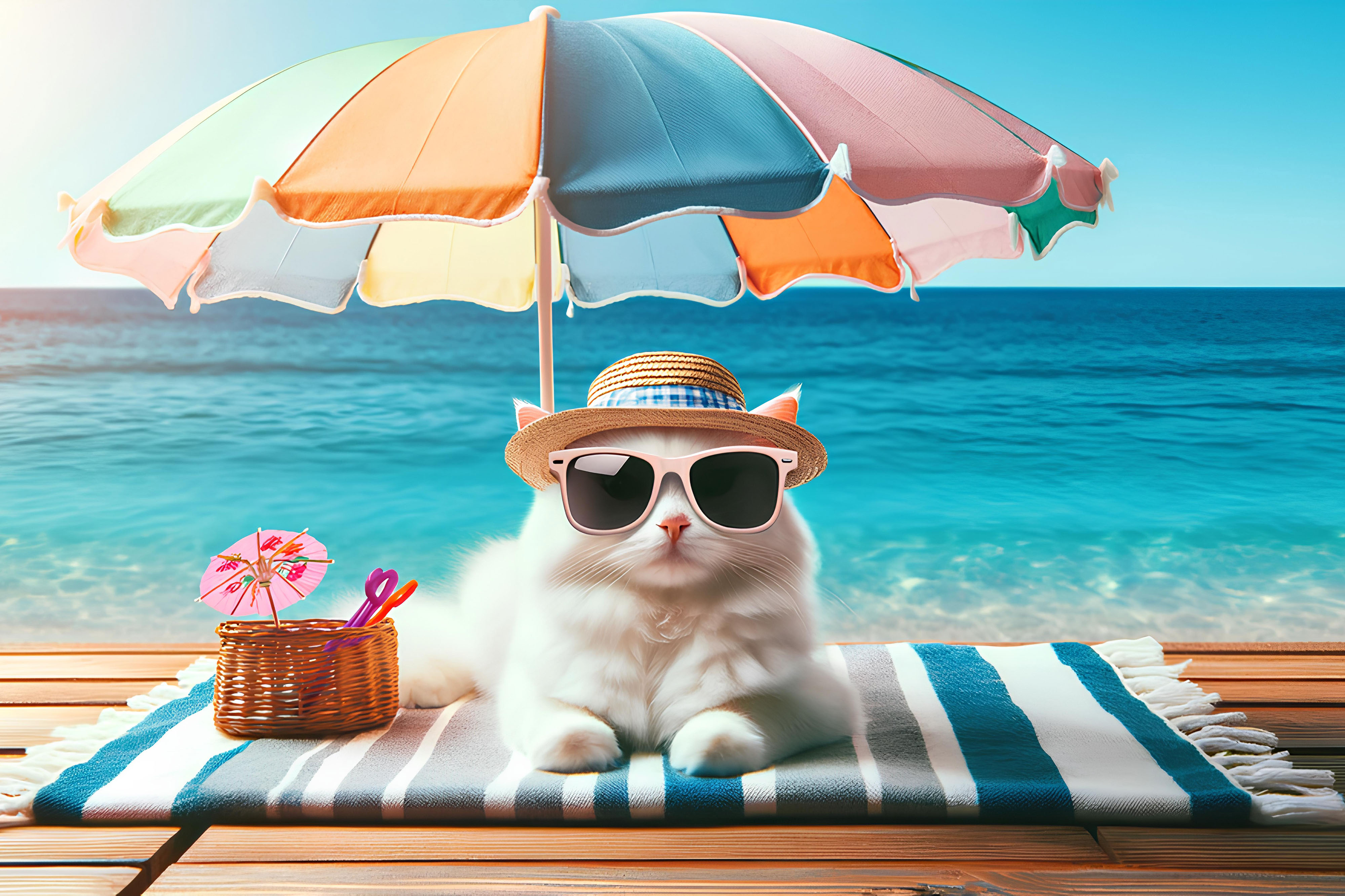 Created with images by GTeam - "The happy little girl in a big hat" • photosaint - "cyclist's hand on the brake lever of a bicycle steering wheel" • Tatiana Foxy - "Portrait of caucasian middle aged woman of 40s looking at camera on gray background" • Anat art - "Abstract visualization of molecules and chemical structures in a colorful background representing scientific concepts and discoveries.,Generative AI" • Pixels Hunter - "Curious child holding magnifying glass against bright teal background." • Anna - "a white cat under a beach umbrella with a sea background. The cat is wearing trendy sunglasses and a small sun hat"