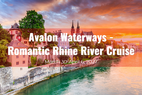 Sail with us from March 30, 2027 to April 6, 2027 on the Avalon View from Basel, Switzerland to Amsterdam, The Netherlands. Prepaid Gratuities are included and rates include a $2200 savings per cabin - based on double occupancy.