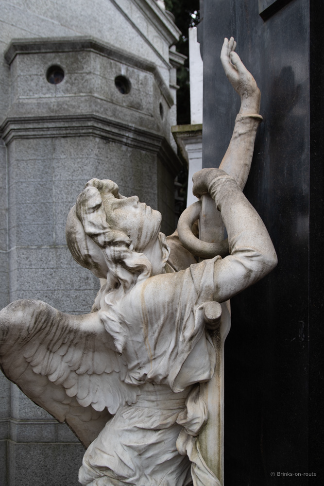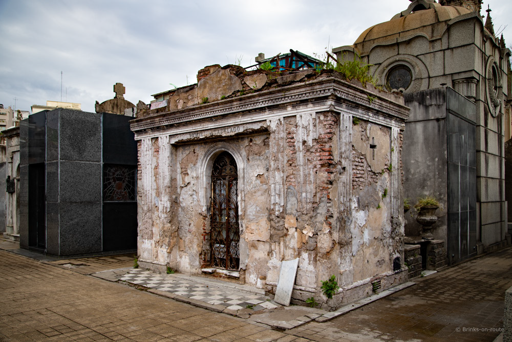Wanneer alles is geregeld, de boot en Cateau, kunnen we rustig aan doen en de toerist uithangen. We zitten vlakbij de bekende begraafplaats. Erg indrukwekkend met al die gezellige huisje waar mensen voor eeuwig slapen. Het is bijzonder dat sommige mausoleums er zo beroerd aan toe zijn en op instorten staan. Het is even zoeken, maar ergens achteraf vinden we het graf van Eva Peron