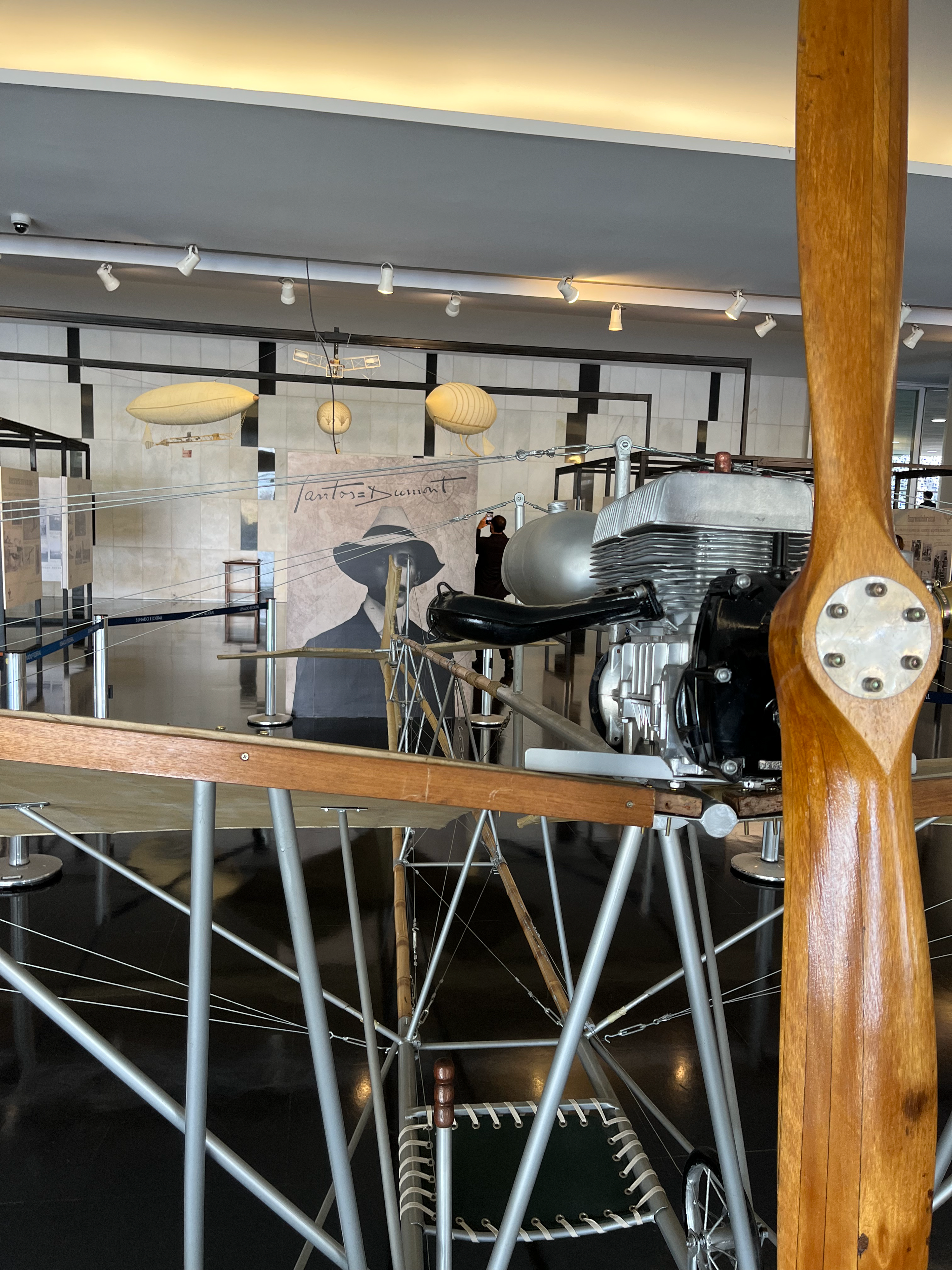 A exposição conta alguns detalhes que explicam a trajetória de Santos Dumont rumo ao invento do avião. No final do século XIX, o pai dele, Henrique Dumont, possuía uma fazenda produtora de café no interior de São Paulo, região de Ribeirão Preto. A propriedade era tão extensa que foi possível construir uma ferrovia de 96 km dentro dela. O passatempo do garoto Santos Dumont era dirigir as locomotivas. Em função de uma queda a cavalo, Henrique Dumont se mudou com a família para a França em busca de tratamento no ano de 1891. Segundo relatos da época, os negócios dele foram vendidos por 6 milhões de dólares. Chegando a Paris, Santos Dumont se encantou com os motores a combustão e recebeu aulas de física, química e engenharia mecânica e elétrica.