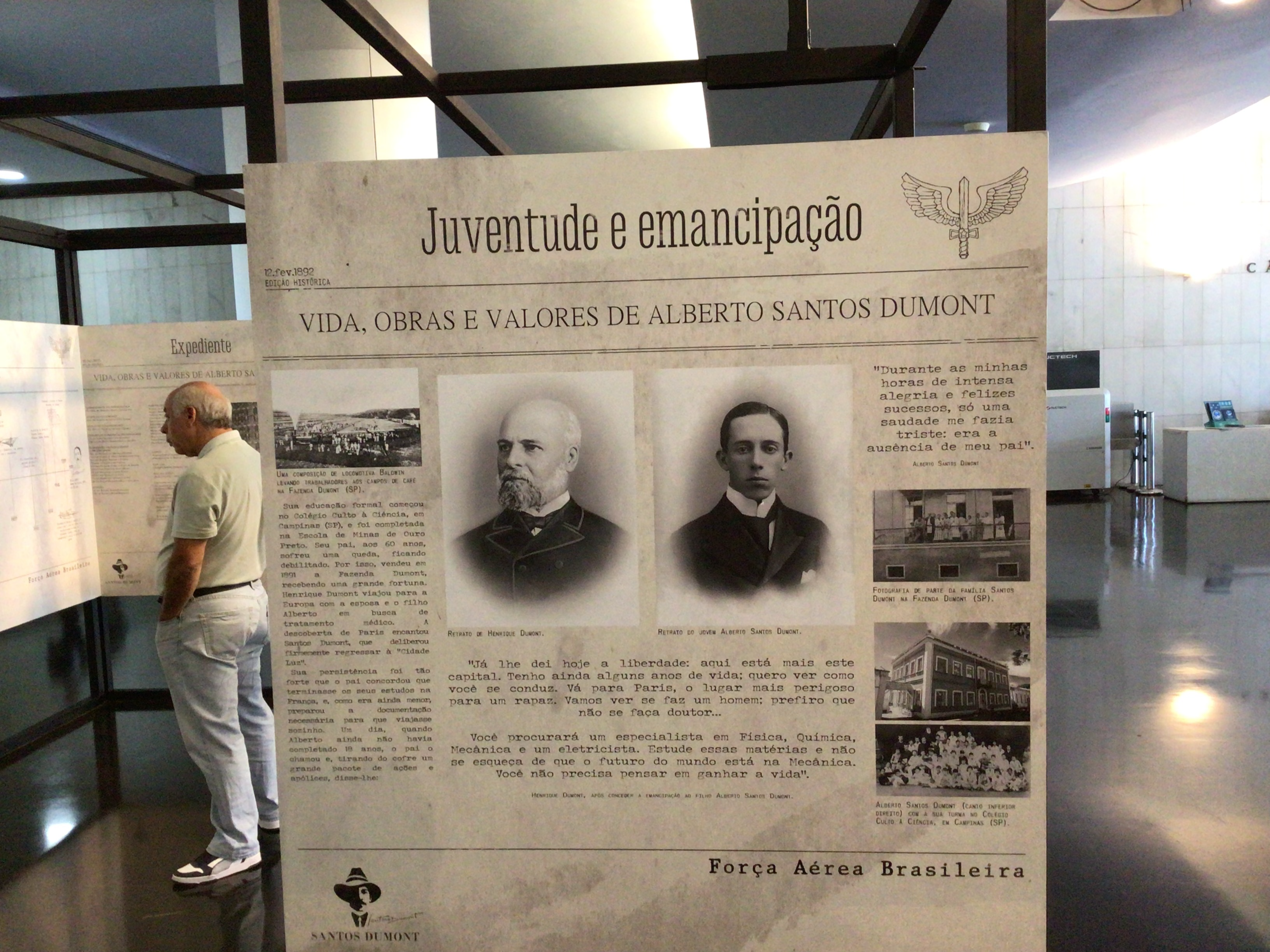 O mineiro Alberto Santos Dumont, nascido em 1873, é reconhecido mundialmente como um dos pais da aviação. Em 1906, o voo do 14 Bis em torno da Torre Eiffel na cidade de Paris, marcou o início da grande aventura pelos céus do planeta. O homem podia finalmente voar. A exposição organizada pela Força Aérea Brasileira reuniu 150 imagens para marcar os 150 anos de nascimento de Santos Dumont e se encerrou em 30 de julho. O Salão Negro do Congresso recebeu fotos, vídeos, protótipos de aeronaves como balões e dirigíveis, além de réplicas de duas invenções de Santos Dumont: o 14 Bis e o Demoiselle. O segundo, menos conhecido, era usado por Santos Dumont para se deslocar dentro de Paris e fazer visitas aos amigos franceses!