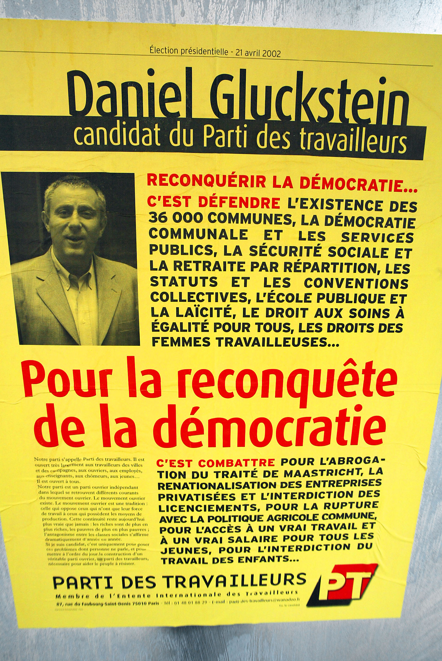 19h00. Lionel Jospin et son épouse, la philosophe Sylviane Agacinski, arrivent à l'"Atelier", son QG de campagne à Paris. Un peu partout sur sa route, des militants l’acclament au son de "Jospin président". Euphoriques, ils ne le savent pas encore, mais depuis 1/4h, Jean-Marie Le Pen est passé devant leur candidat. Sur le coup de 20h, l'information tombe, officielle: Jean-Marie Le Pen récolte 16,86% des voix, derrière Jacques Chirac (19,88%) mais devant Lionel Jospin, qui figure en troisième position avec 16,18%. Le leader du FN sera donc au second tour, pas Jospin.