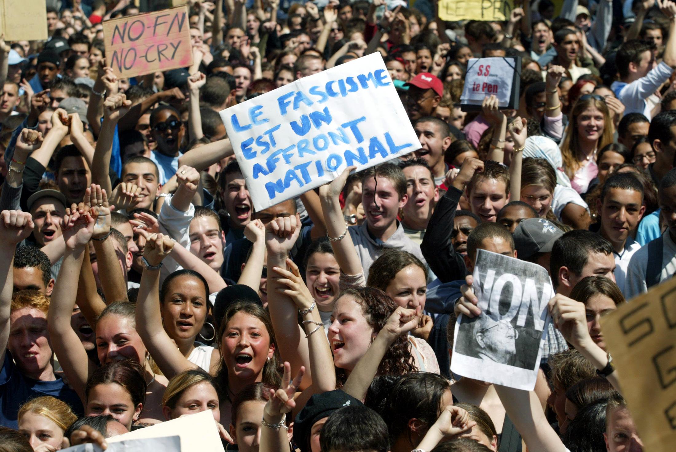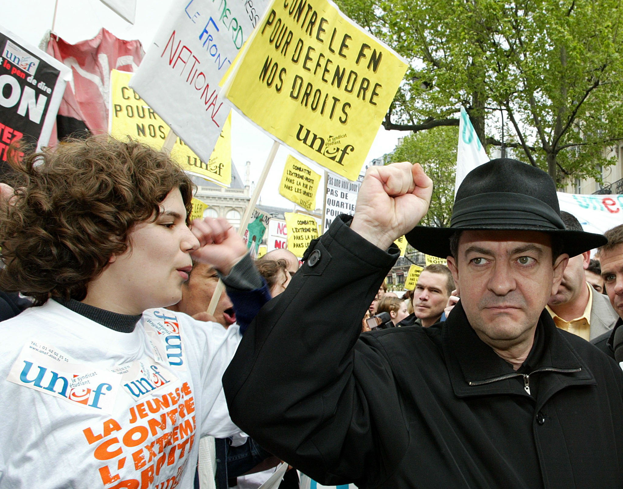 De leur côté, les Français descendent dans la rue pour "faire front au Front". Parmi eux, des personnalités publiques comme l'alors ministre délégué à l'enseignement professionnel, un certain...Jean-Luc Mélenchon.
