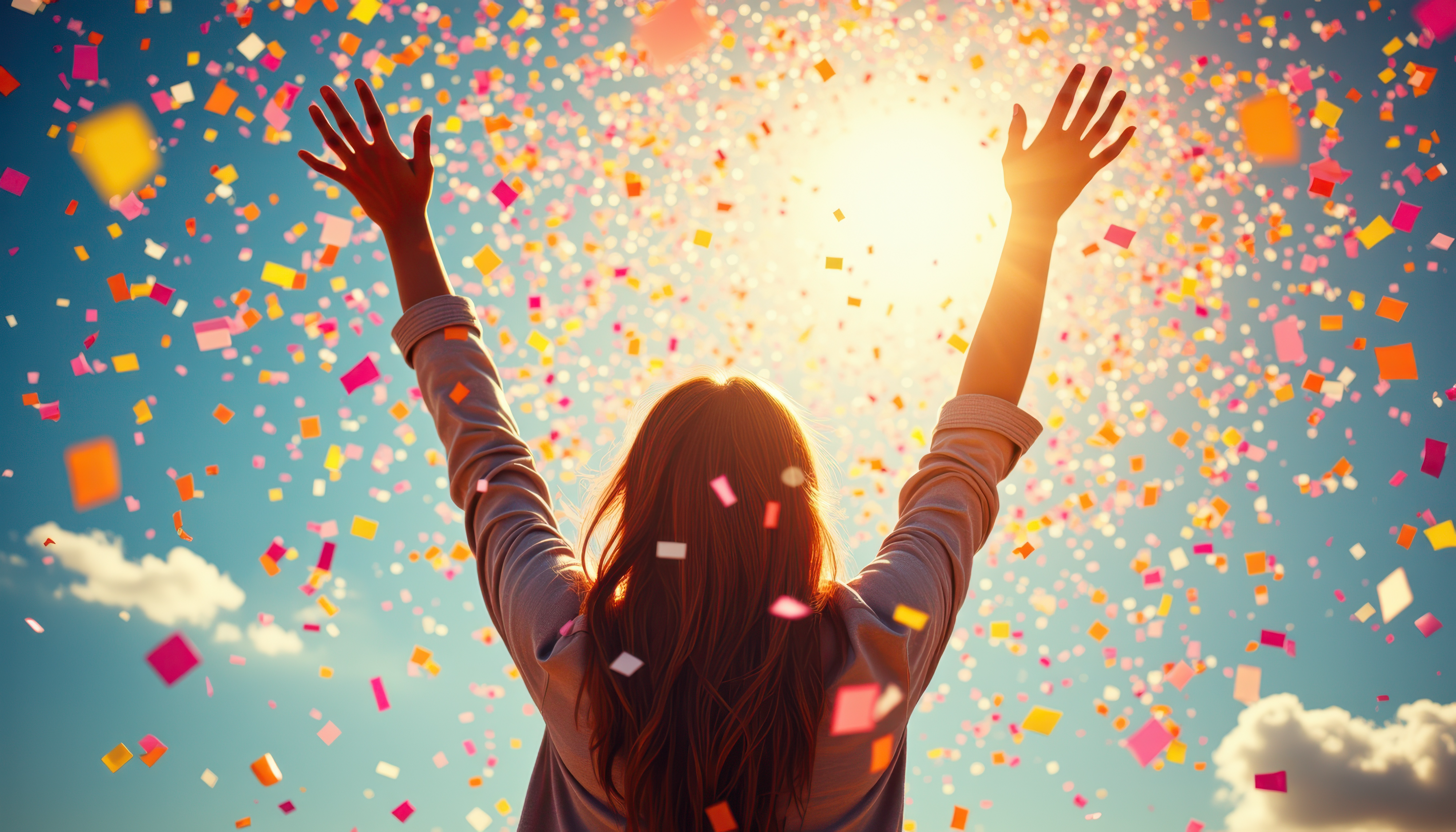 Created with images by Oldcorporal - "Woman celebrating with confetti under bright sunlight " • manonteravest - "Hello saturday finally weekend text on hanging board white brick outdoor wall" • magele-picture - "Rewards Program" • adragan - "Successful business team winner give five. Team building." • miss irine - "Abstract cloud computing tech. Safe encrypted storage, personal data protection, verified encription tech. Security protocol wireless file transfer drive service. Global database, online information" • umut hasanoglu - "Wooden signpost with arrows pointing towards help, guidance, support, and advice against a bright blue sky with clouds." • thodonal - "Concept of information" • alice_photo - "Contact us business icon on computer keyboard with the globe"