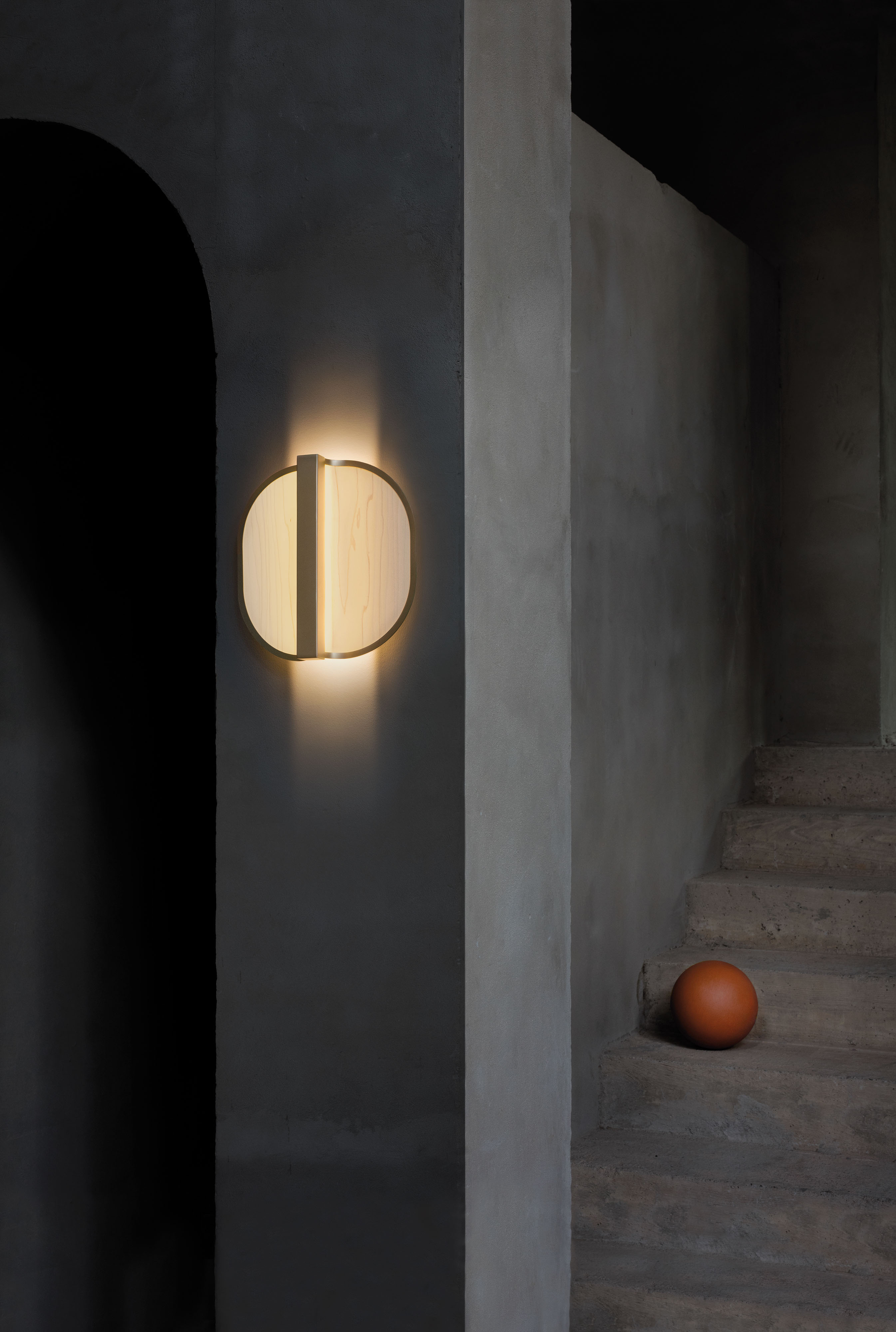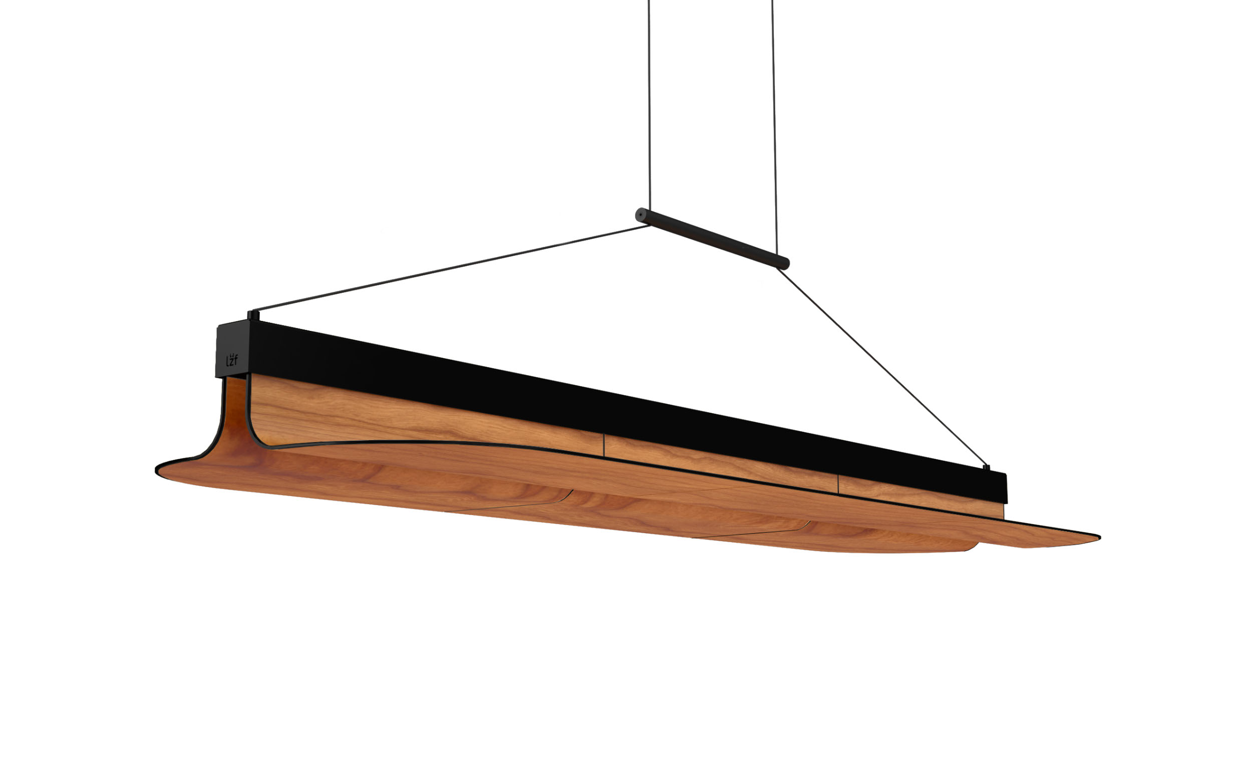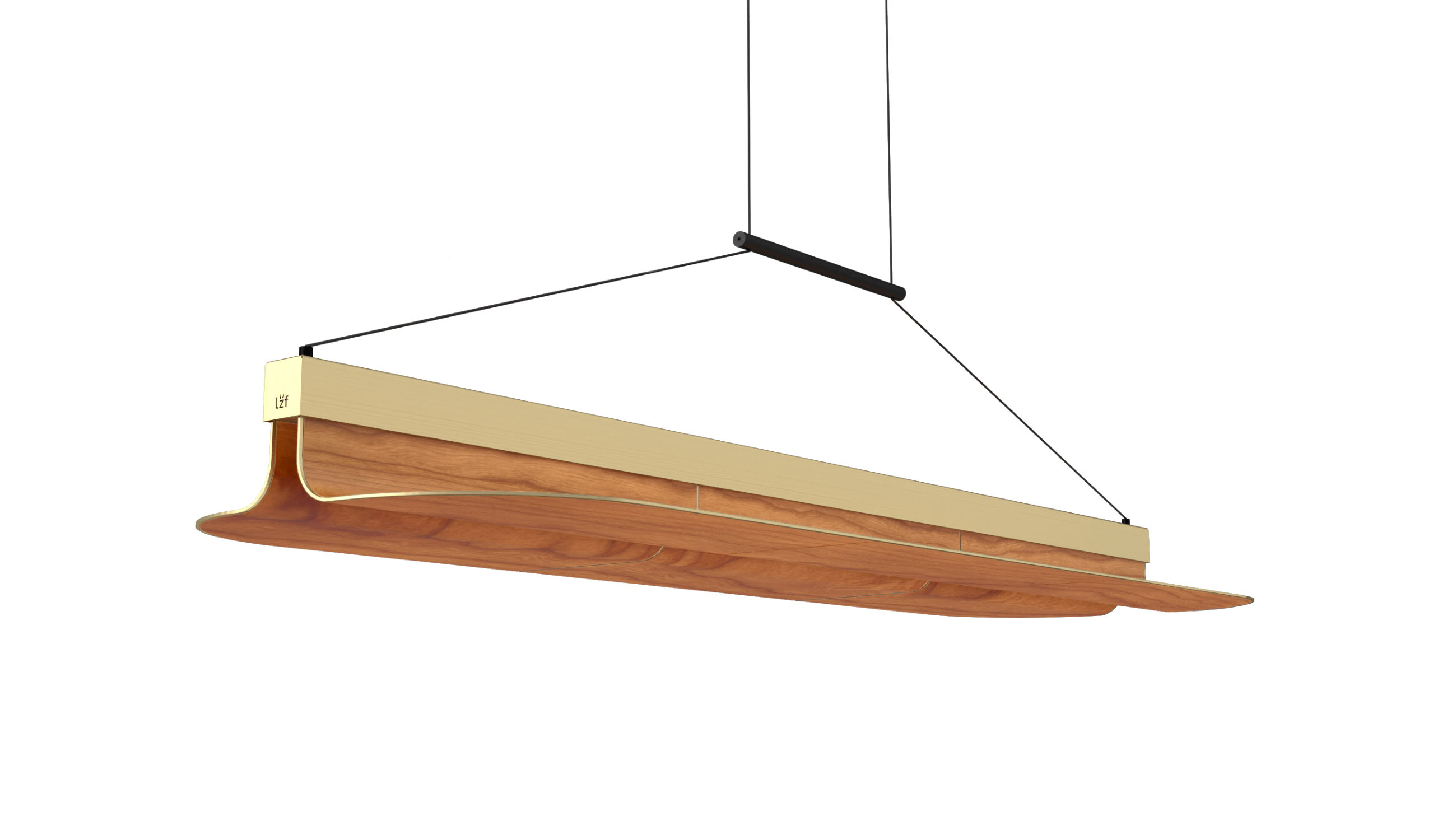 The Omma family of lights are available in only three wood veneer colours: Natural White, Natural Beech, and Natural Cherry. The lamp’s metal finishes (used to create the spine and to edge the wood veneer modules) include Matte Black and Gold.