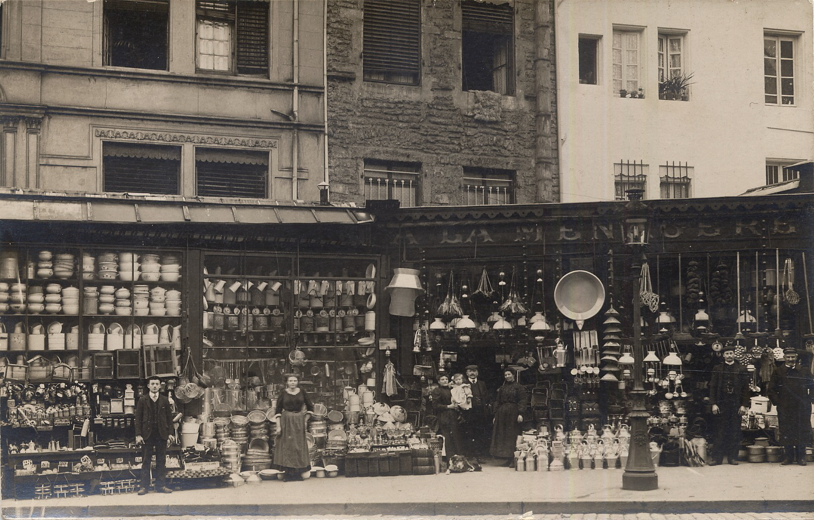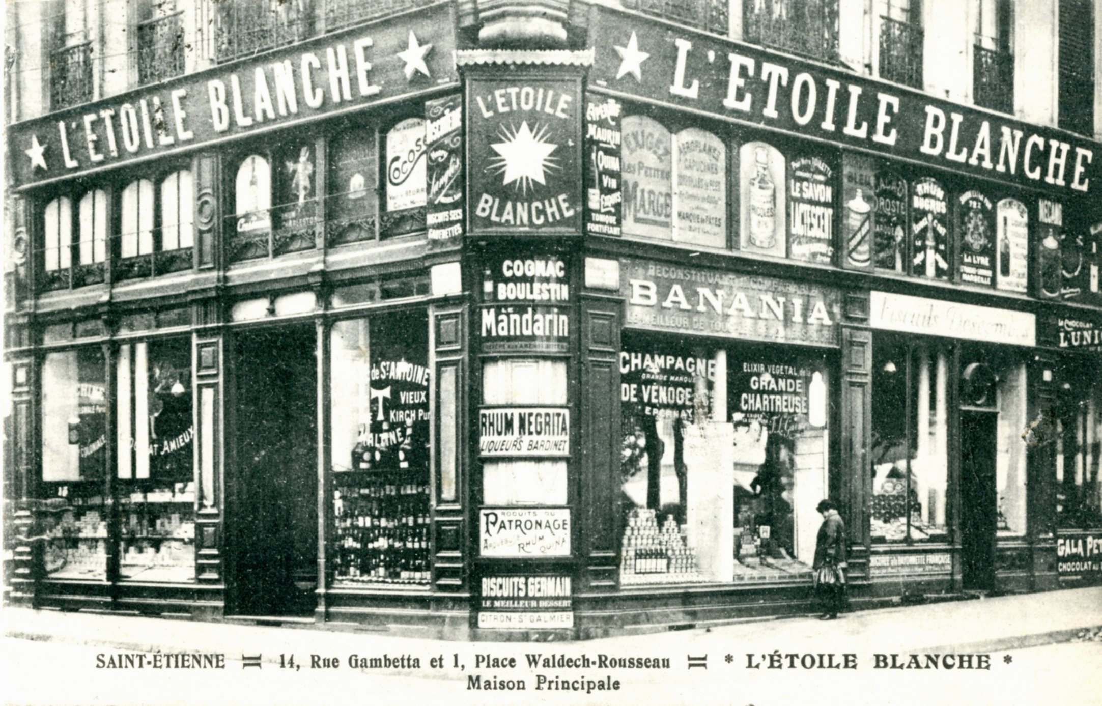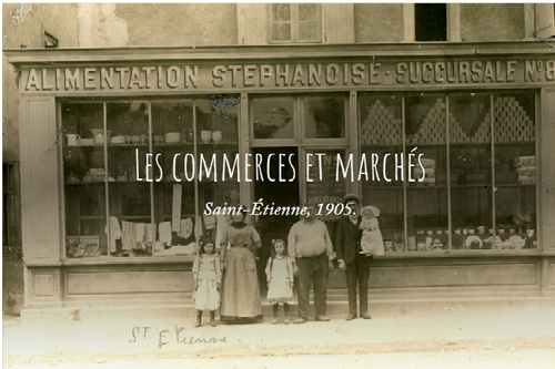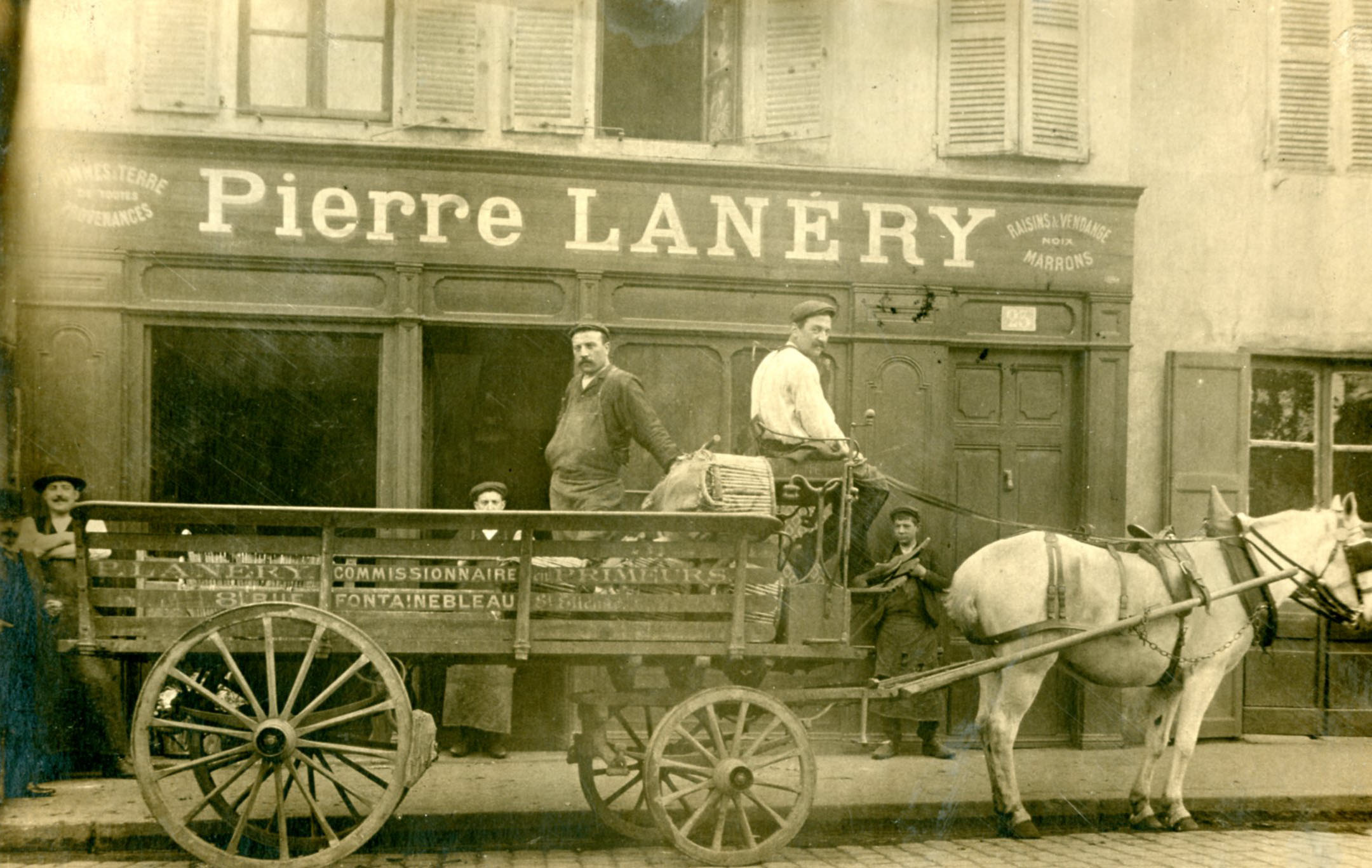 au numéro 23 de cette place, Pierre Lanéry avait sa boutique. On peut voir sur la façade "Pommes de terre, de toutes provenances" et "Raisins à vendange, noix marrons".