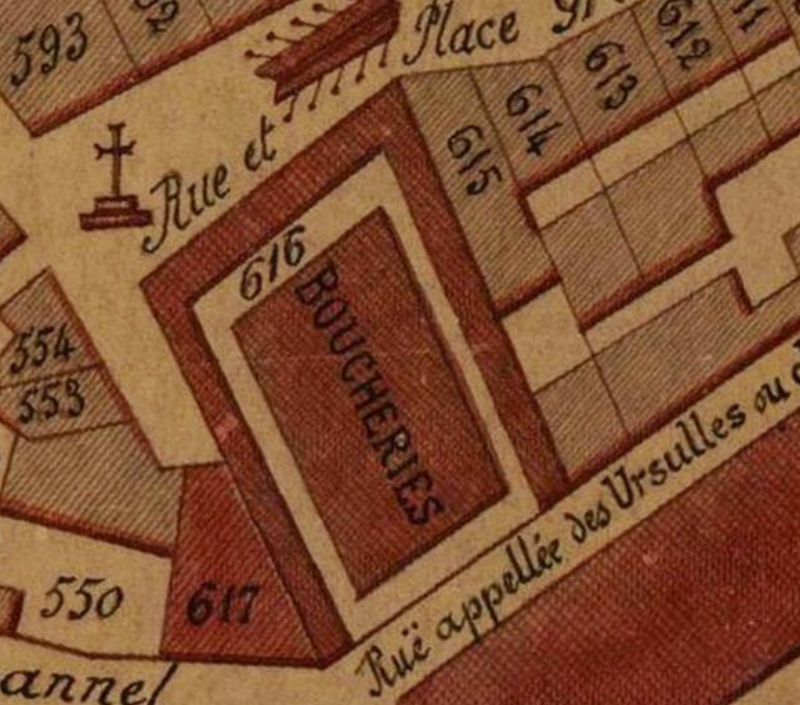 Trente-six bouchers demeurent dans le "quartier de la boucherie" en 1800.